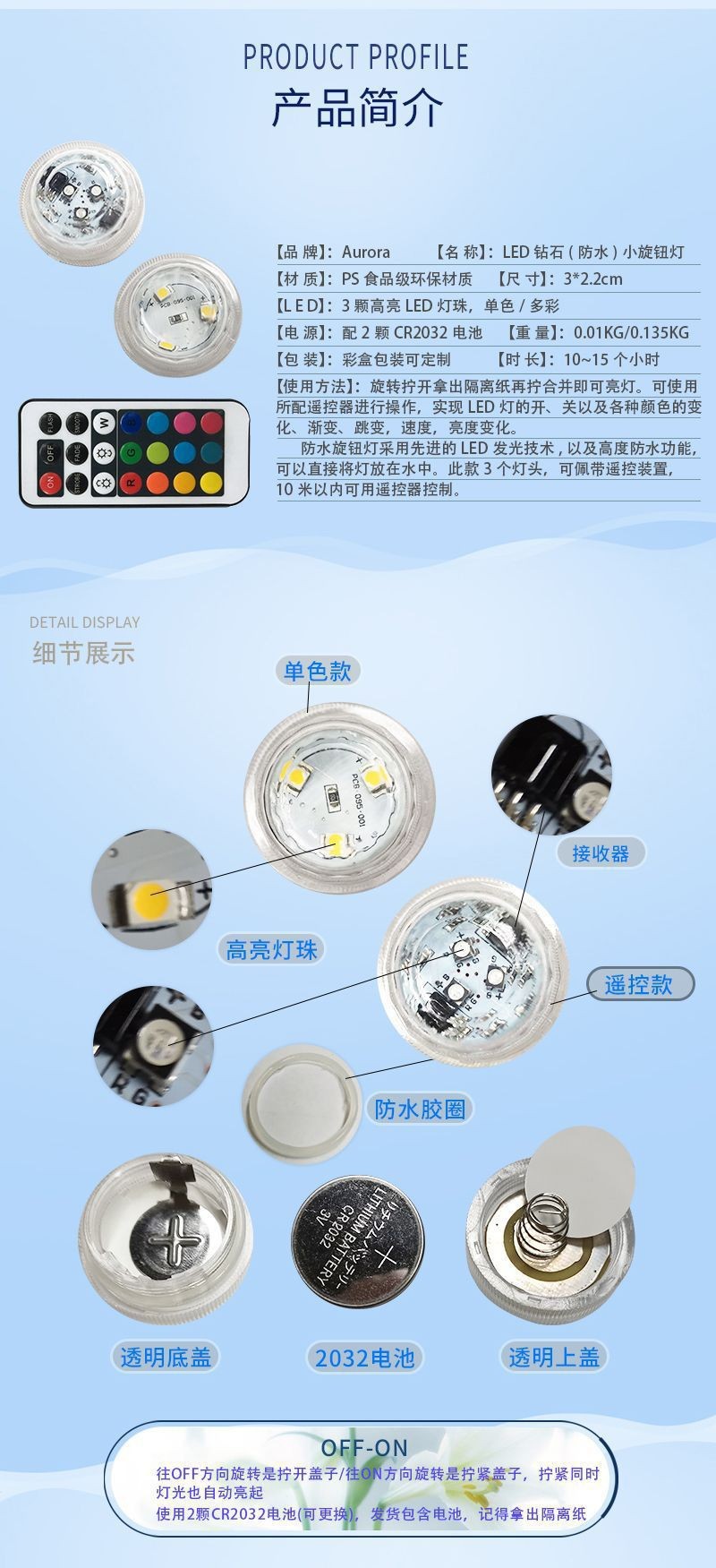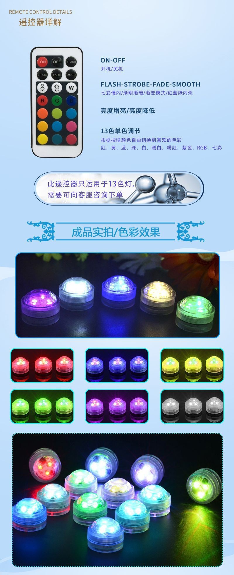 원격 제어 RGB 장식 플래시 라이트 다채로운 동기화 원격 제어 색상 변경 수중등 어항등 촛불등 수족관등