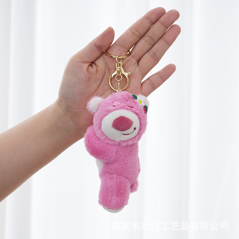 귀여운 핑크 딸기 곰 펜던트 봉제 장난감 스몰 사이즈 꽃 곰 인형 잡아 기계 인형 책가방 장식품 키 체인스토어 가기
