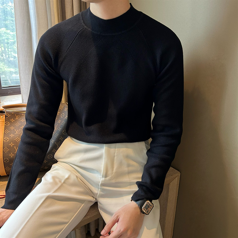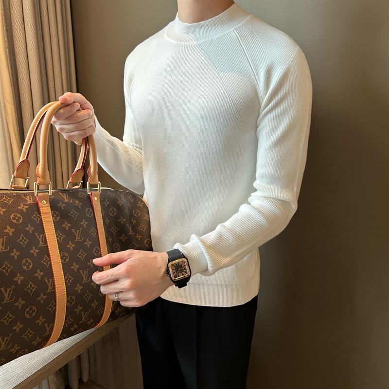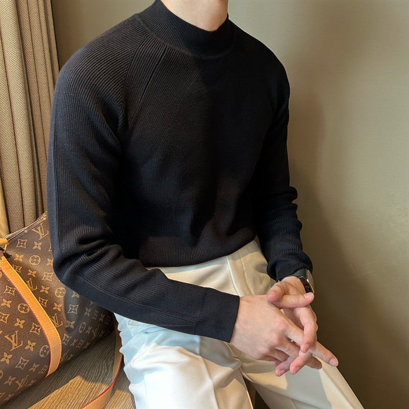 하프 터틀넥 스웨터 남성용 베이스 레이어 가을, 겨울 2024 새로운 따뜻한 니트 스웨터 트렌디 슬림핏 다용도스토어 가기