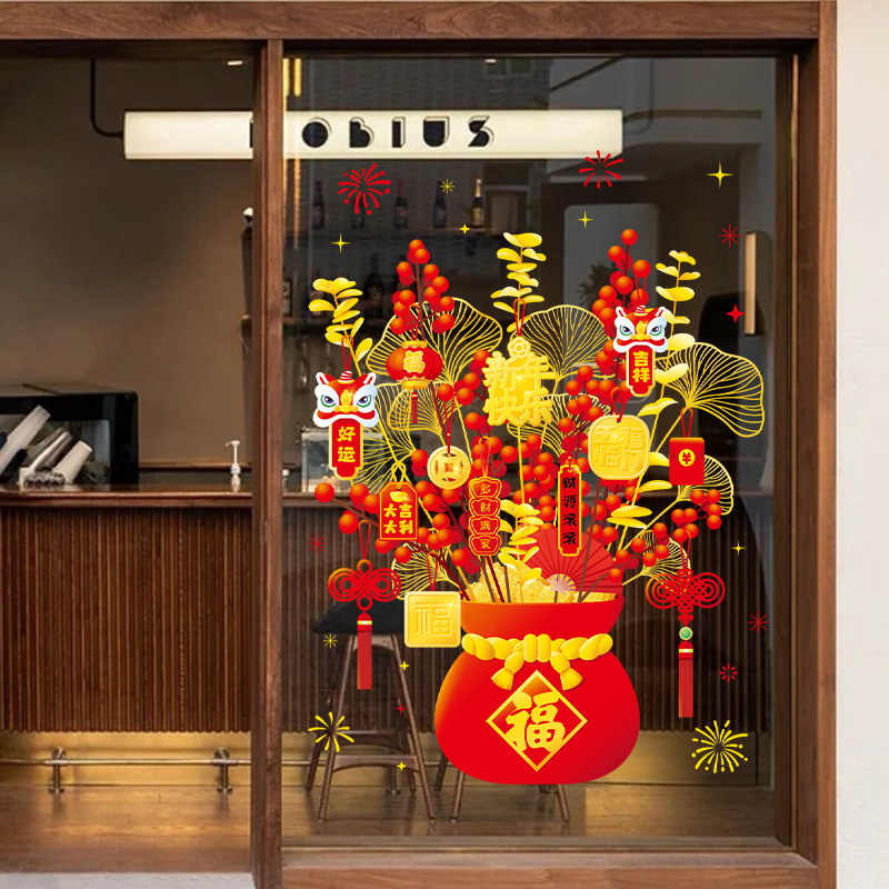 드래곤 년 장식 스티커 2024 새해 행운의 가방 정적 스티커 가게 창 중국 스타일의 정적 스티커 공장 직접 판매