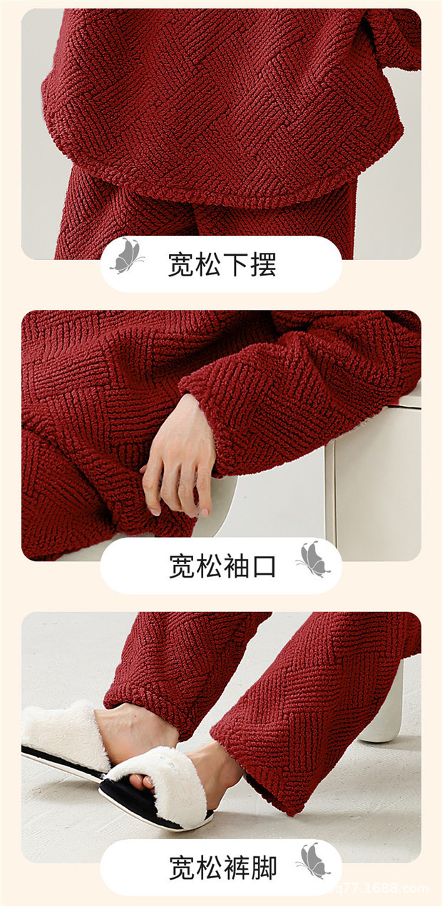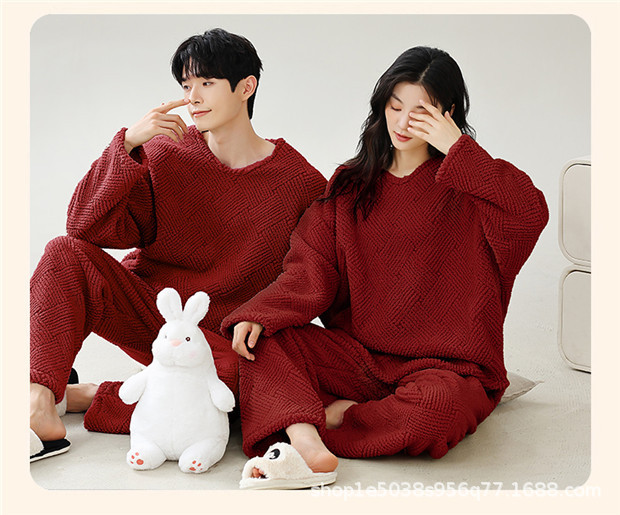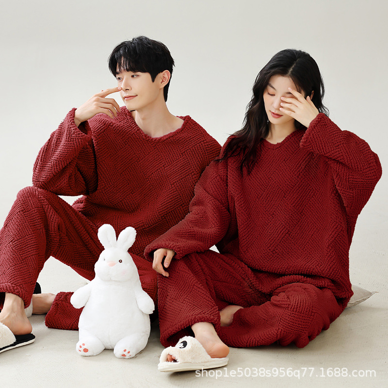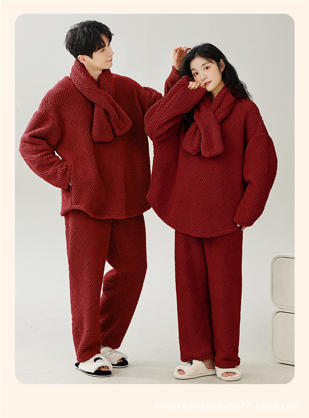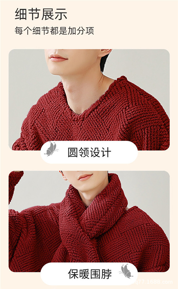 스카프가 달린 빨간 잠옷 가을과 겨울 산호 양털을 두껍게 한 따뜻한 축제 결혼식 남자 야외 홈 웨어