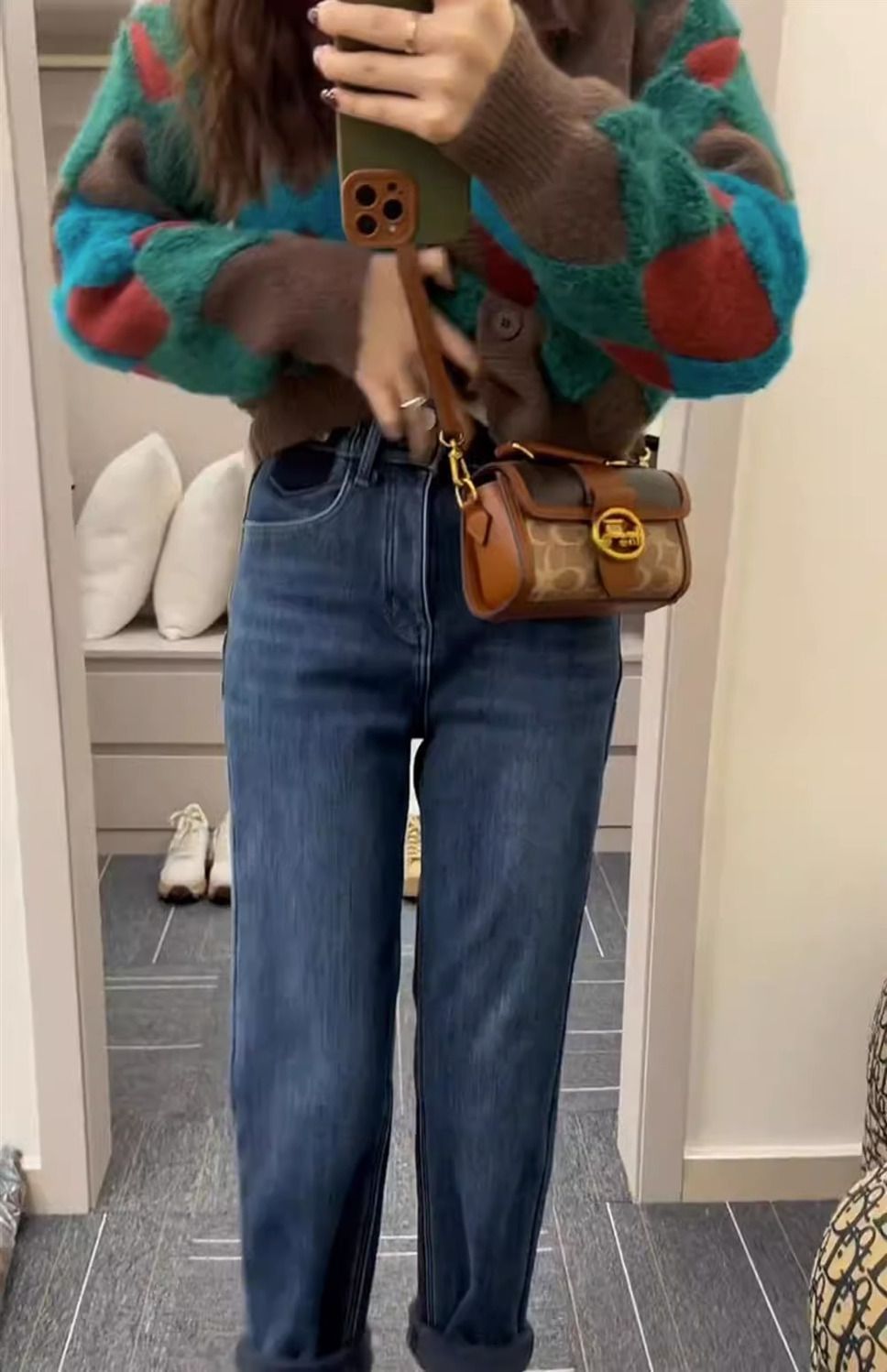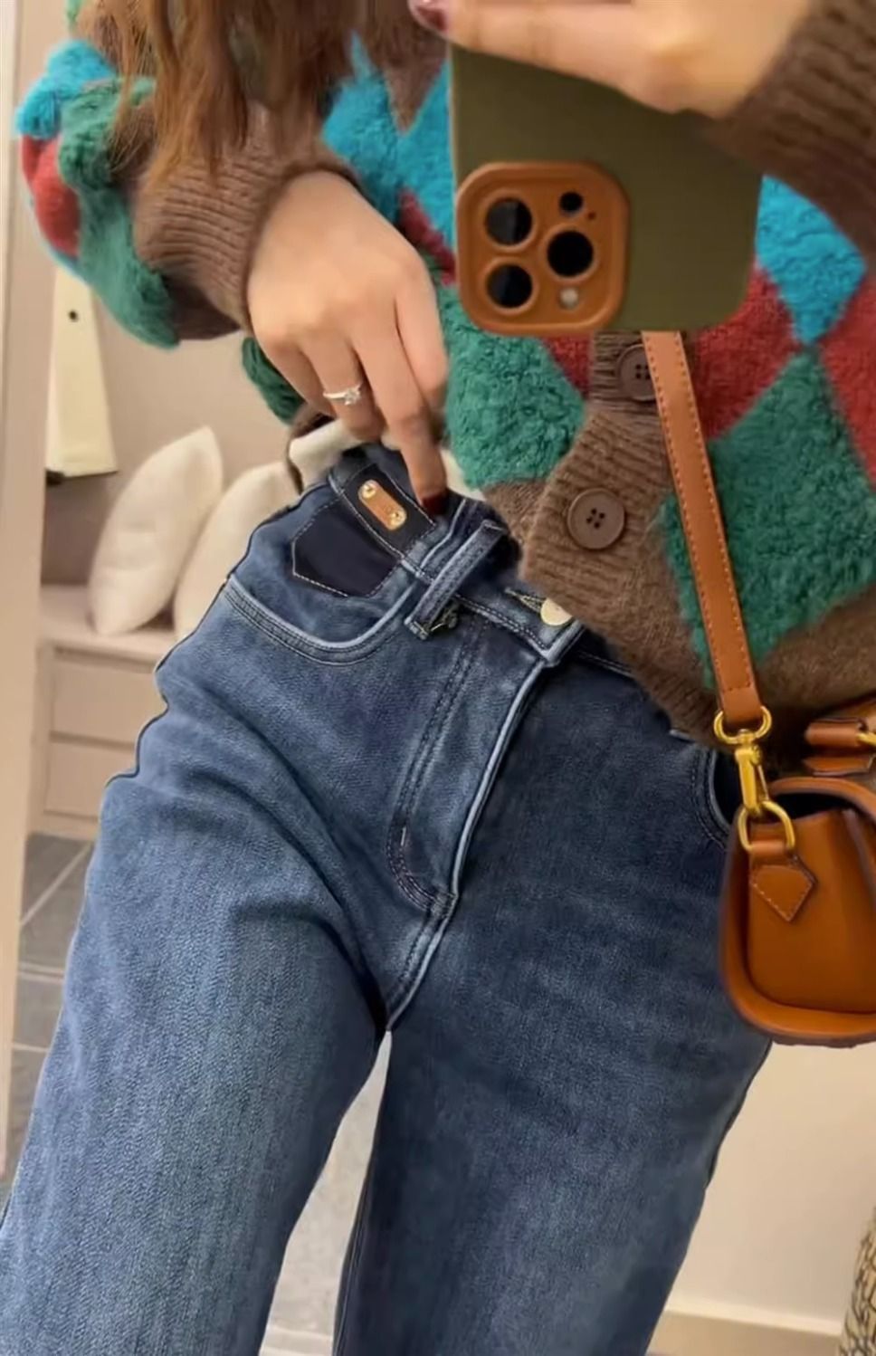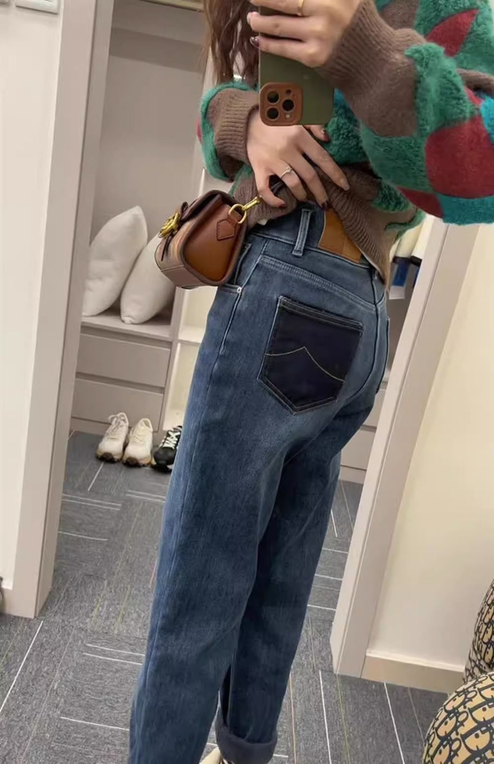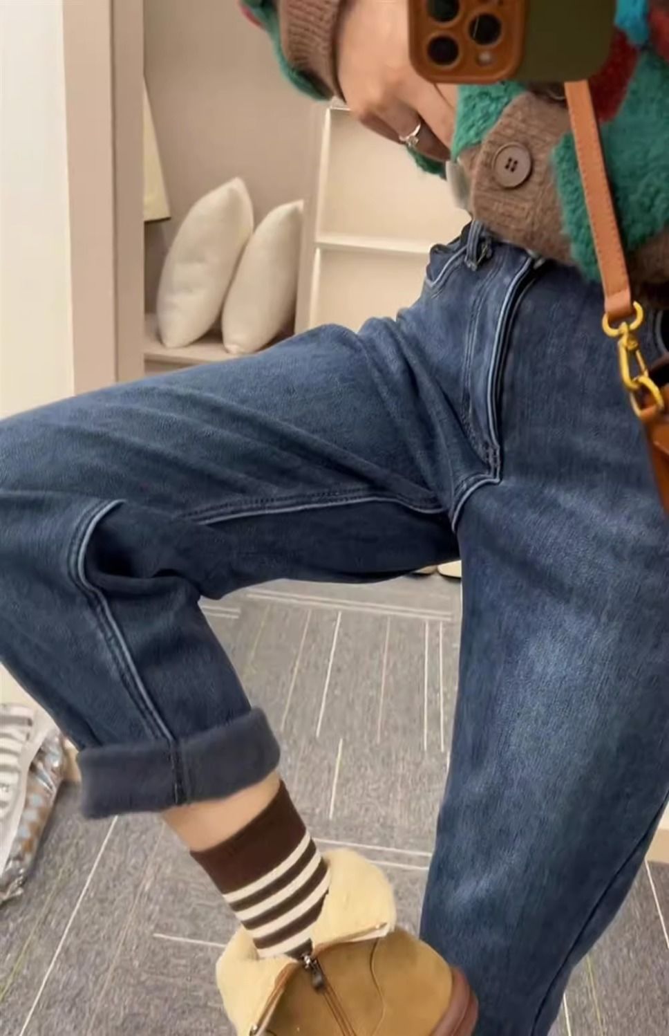 틈새 기모 두껍게 자른 청바지 여성의 2020 겨울 새로운 높은 허리 슬리밍 스트레이트 하렘 바지스토어 가기