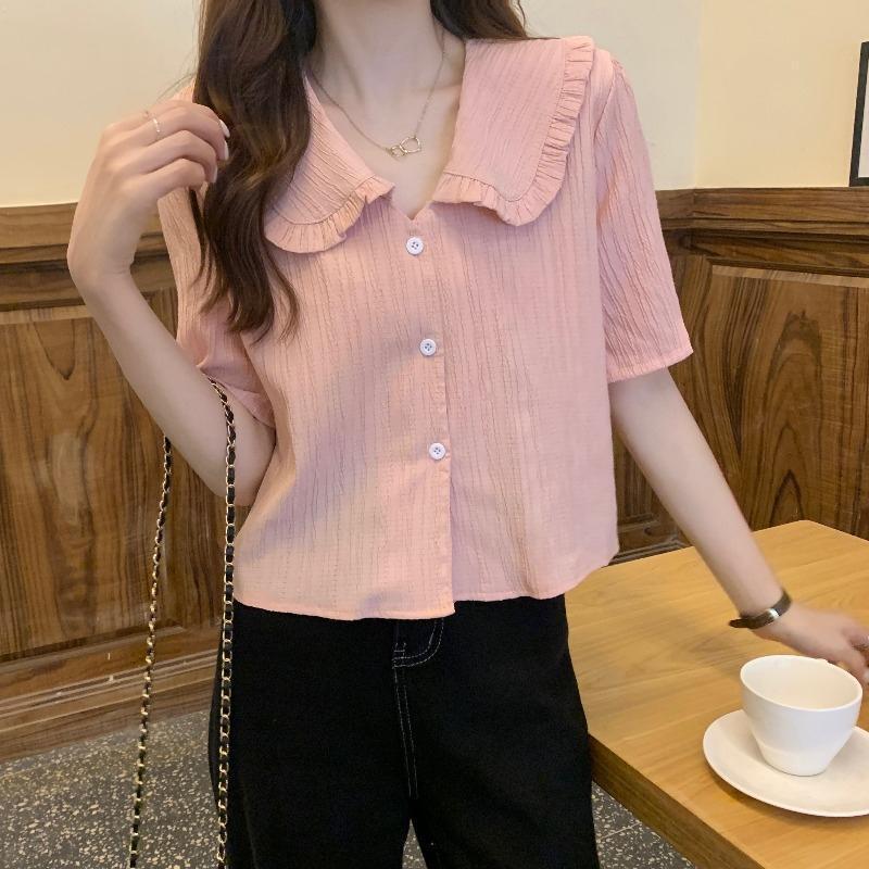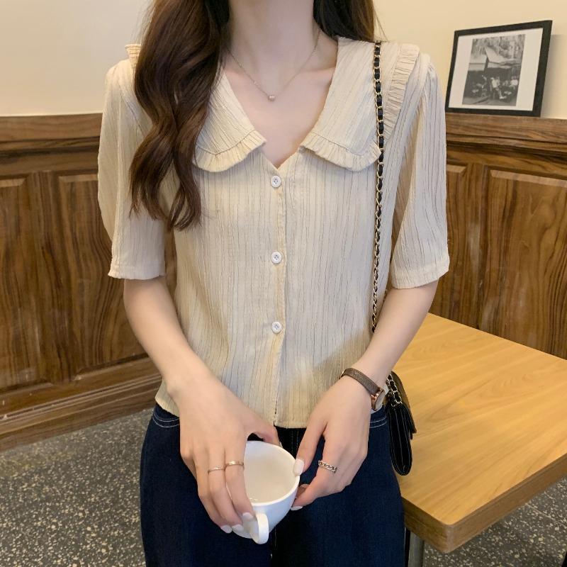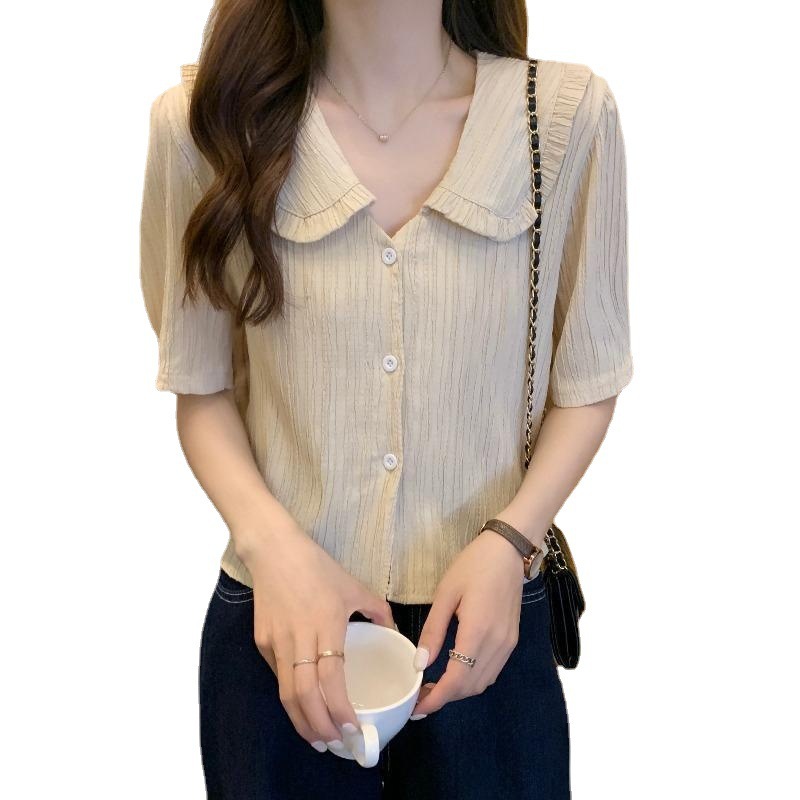 2024 여름 새로운 달콤한 신선한 쉬폰 셔츠 반소매 퍼프 셔츠 신선한 달콤한 귀여운 스타일 인형 칼라 여성스토어 가기