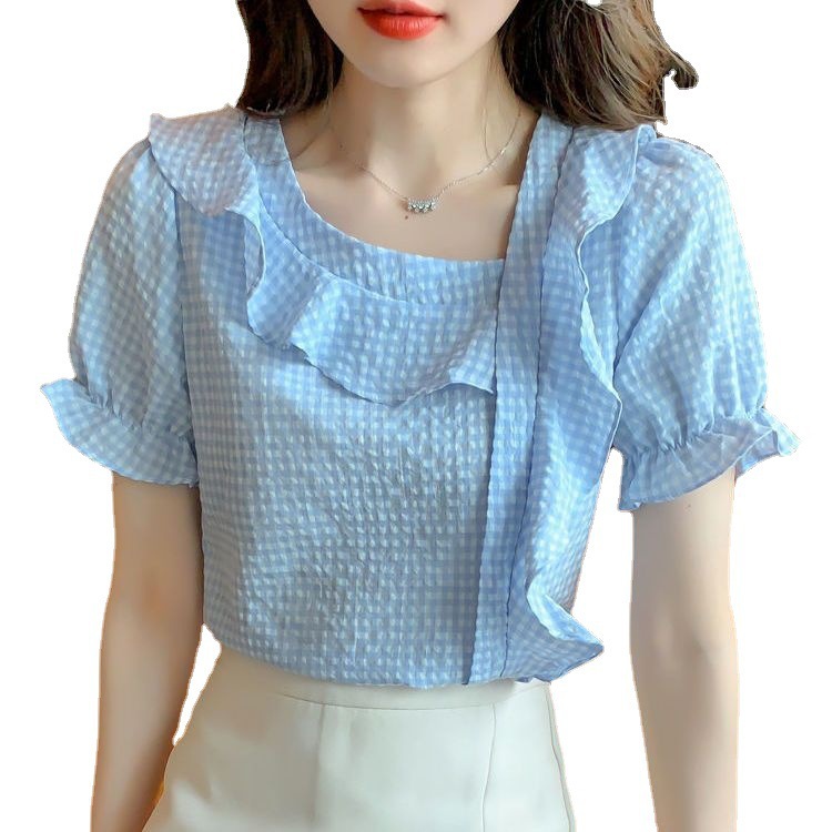 봄 2024 새로운 쉬폰 셔츠 3/4 소매 달콤한 신선한 캐주얼 귀여운 스타일 탑 느슨한 여성 의류스토어 가기