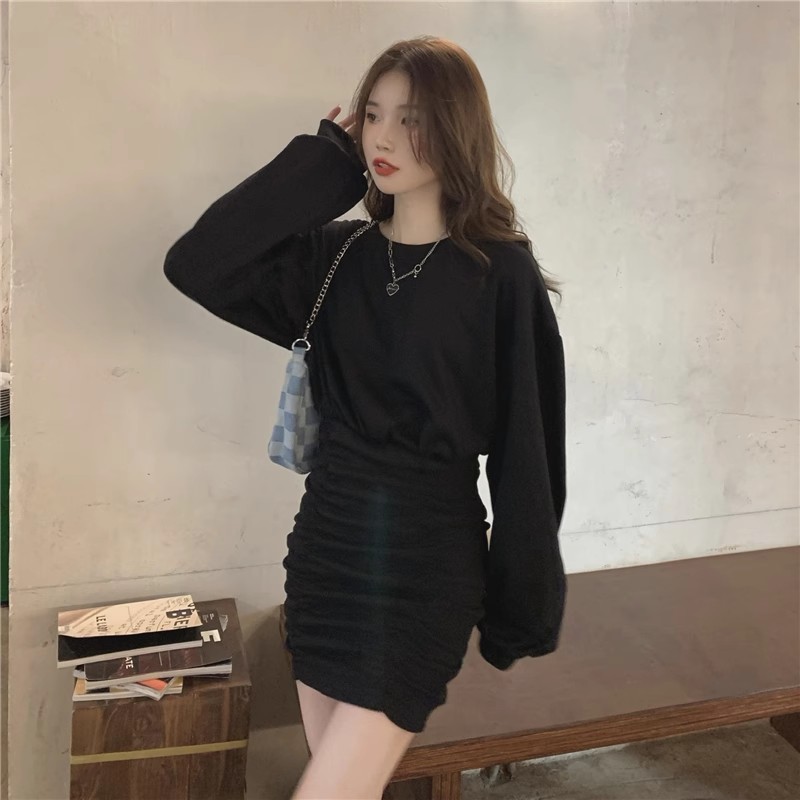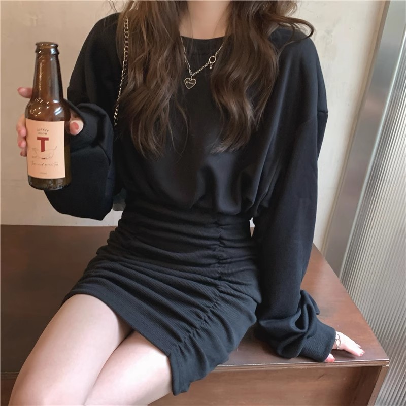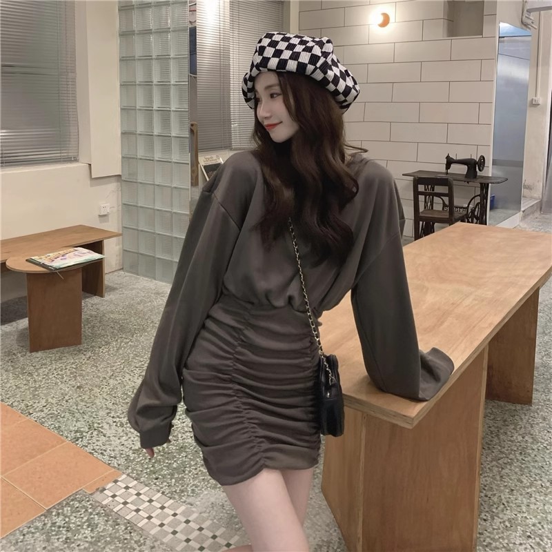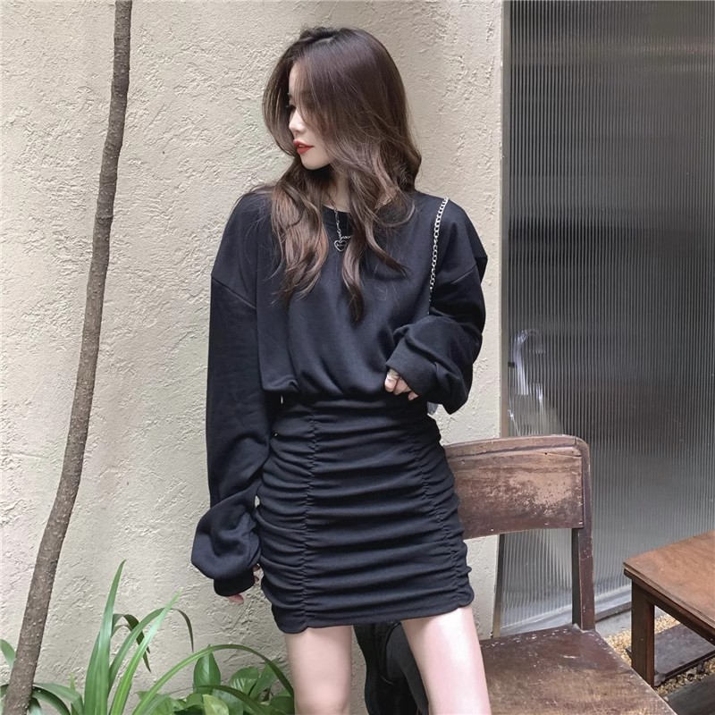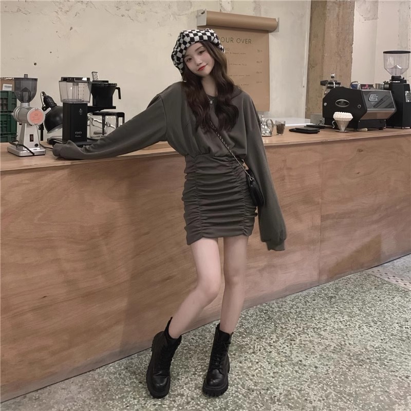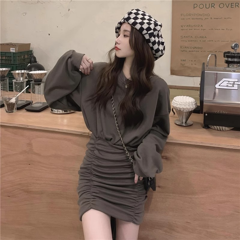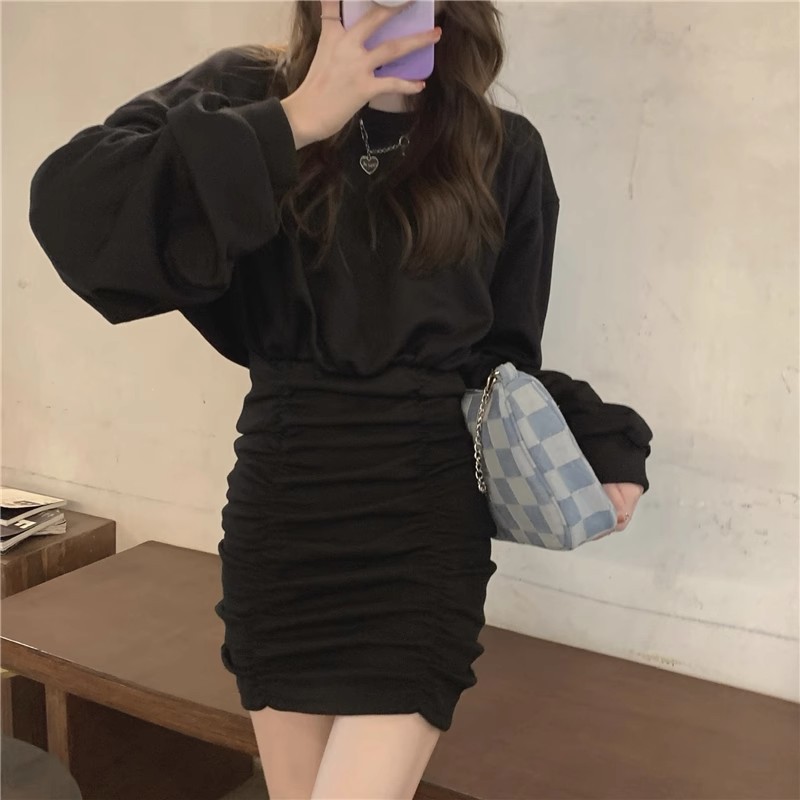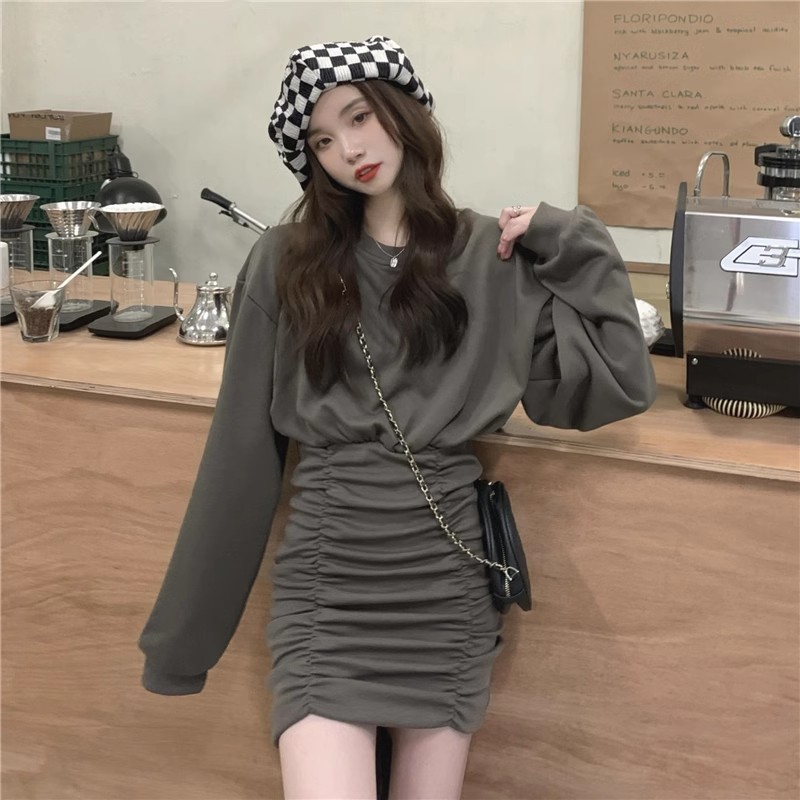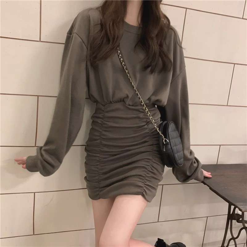 홍콩 스타일 주름 드레스 여성 가을, 겨울 2024 새로운 달콤한 매력 디자인 기질 인기 엉덩이 덮는 짧은 스커트스토어 가기