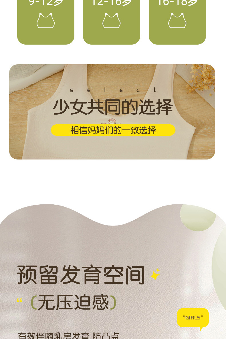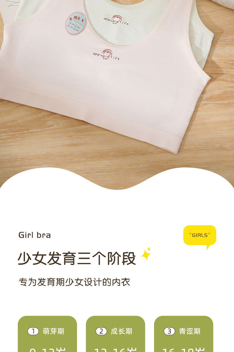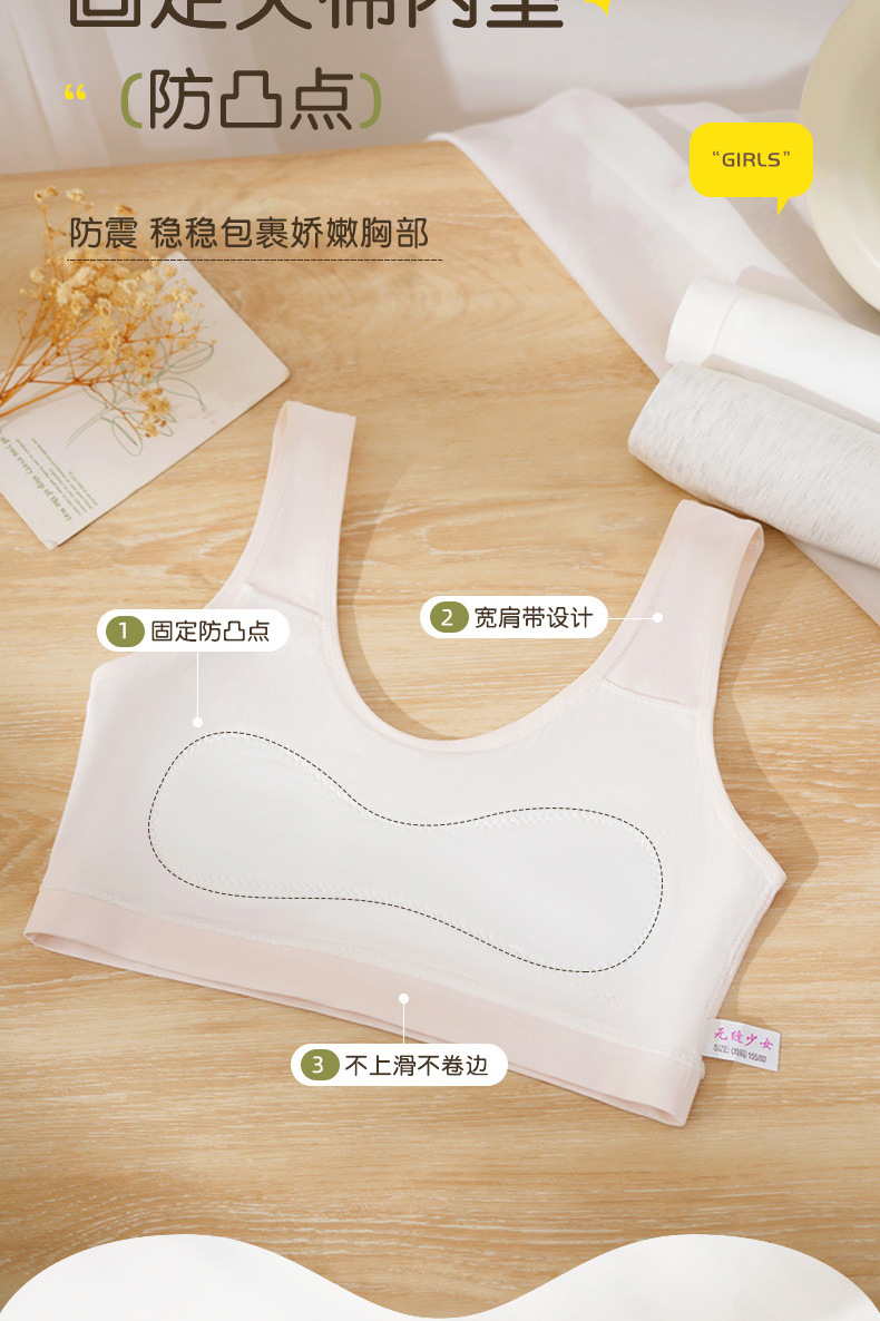소녀의 원활한 1 단계 개발 학생 속옷 간단한 땀 흡수성 노출 방지 퀼트 학생 편안한 조끼 여성스토어 가기