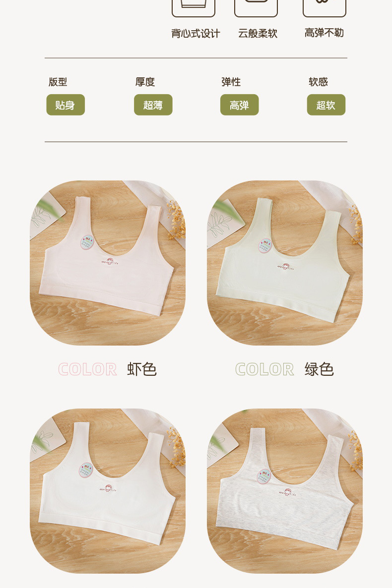 소녀의 원활한 1 단계 개발 학생 속옷 간단한 땀 흡수성 노출 방지 퀼트 학생 편안한 조끼 여성
