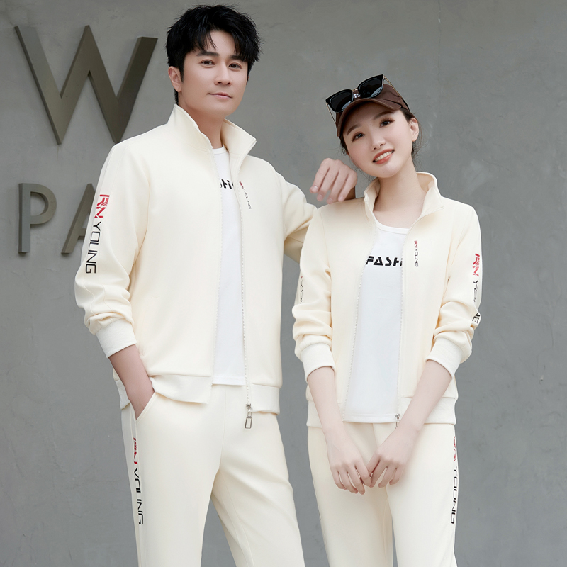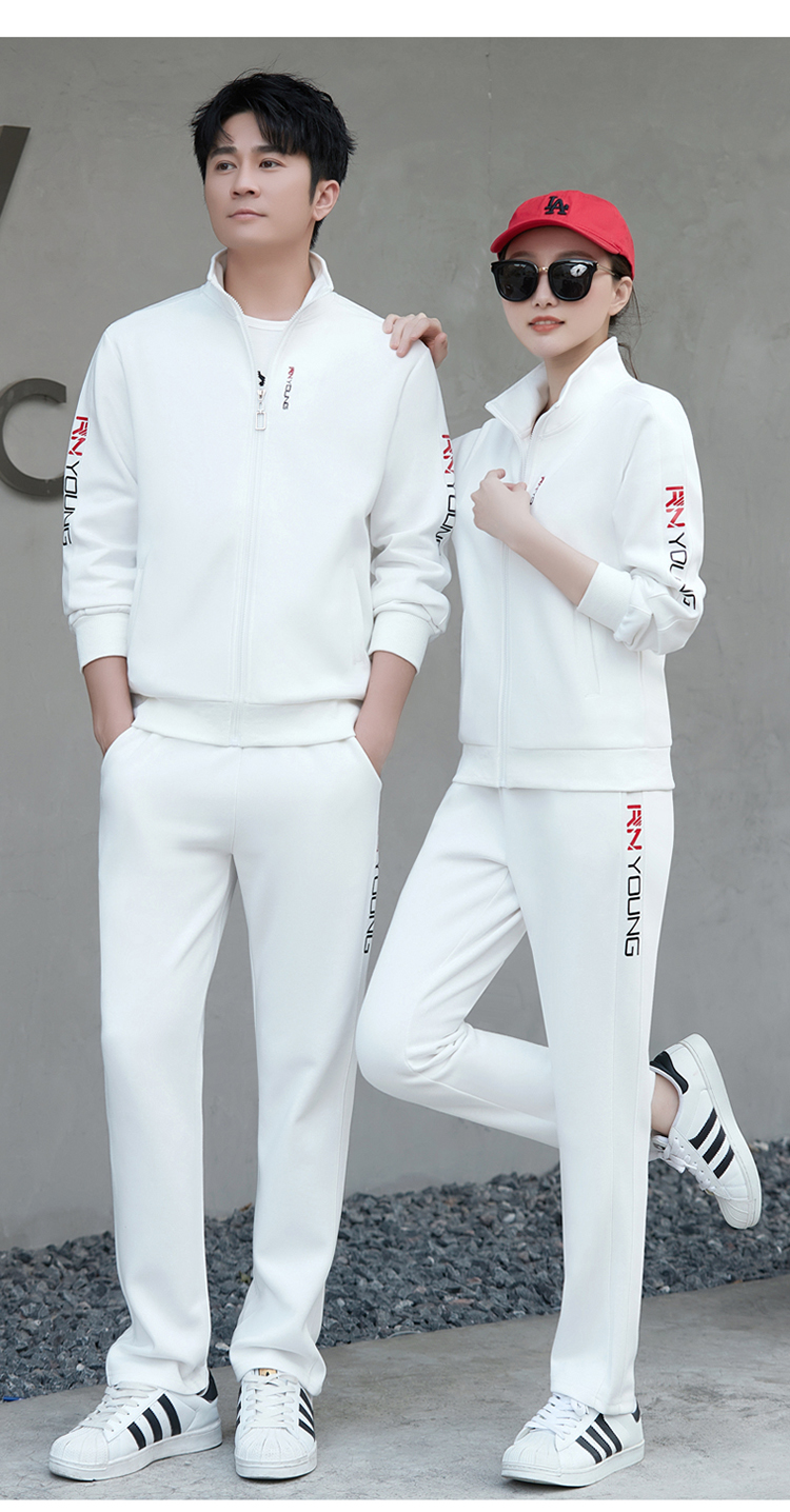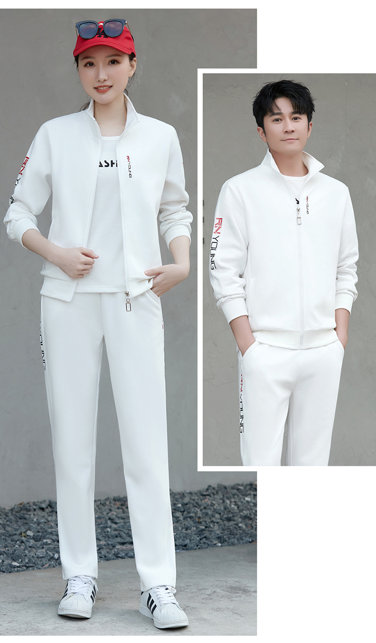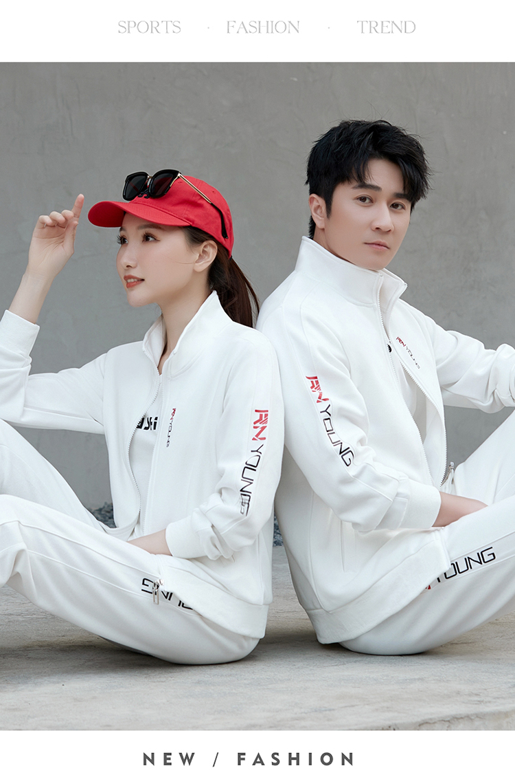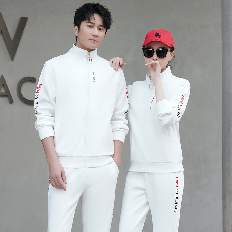 봄과 가을 패션 커플 화이트 스포츠 세트 남성과 여성의 플러스 사이즈 긴팔 재킷 운동 러닝 의류 3 피스 세트스토어 가기