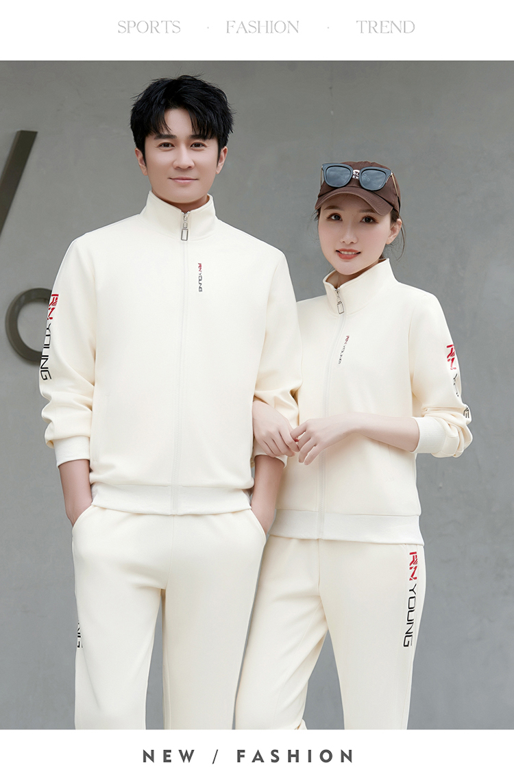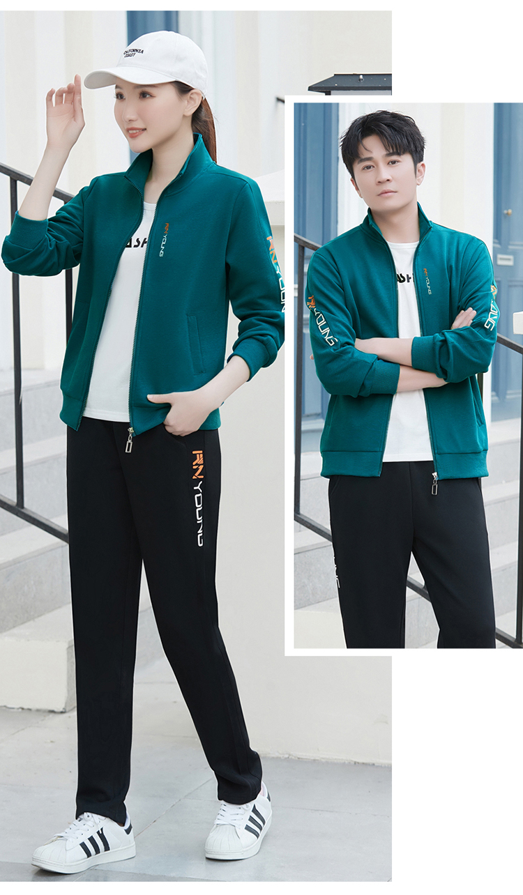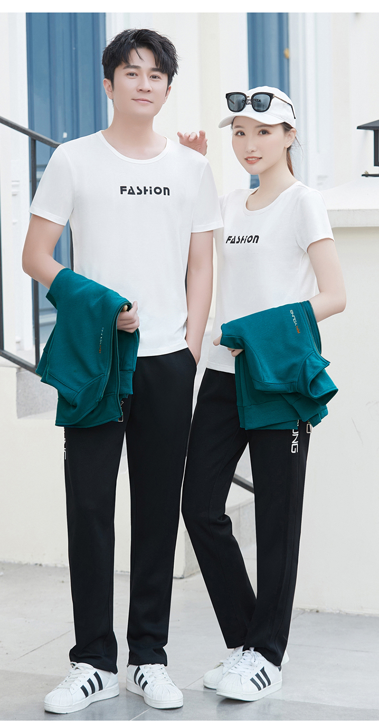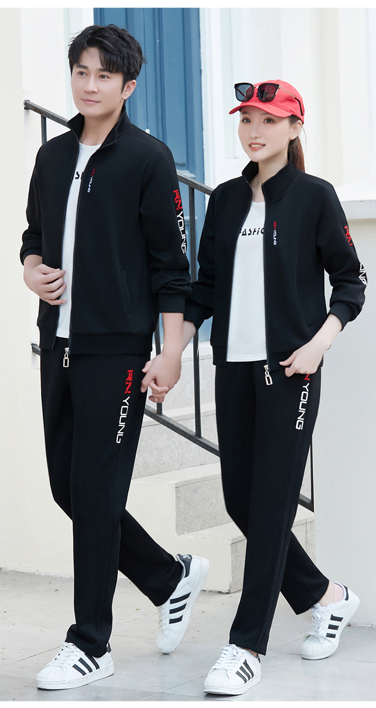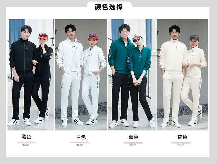 봄과 가을 패션 커플 화이트 스포츠 세트 남성과 여성의 플러스 사이즈 긴팔 재킷 운동 러닝 의류 3 피스 세트스토어 가기