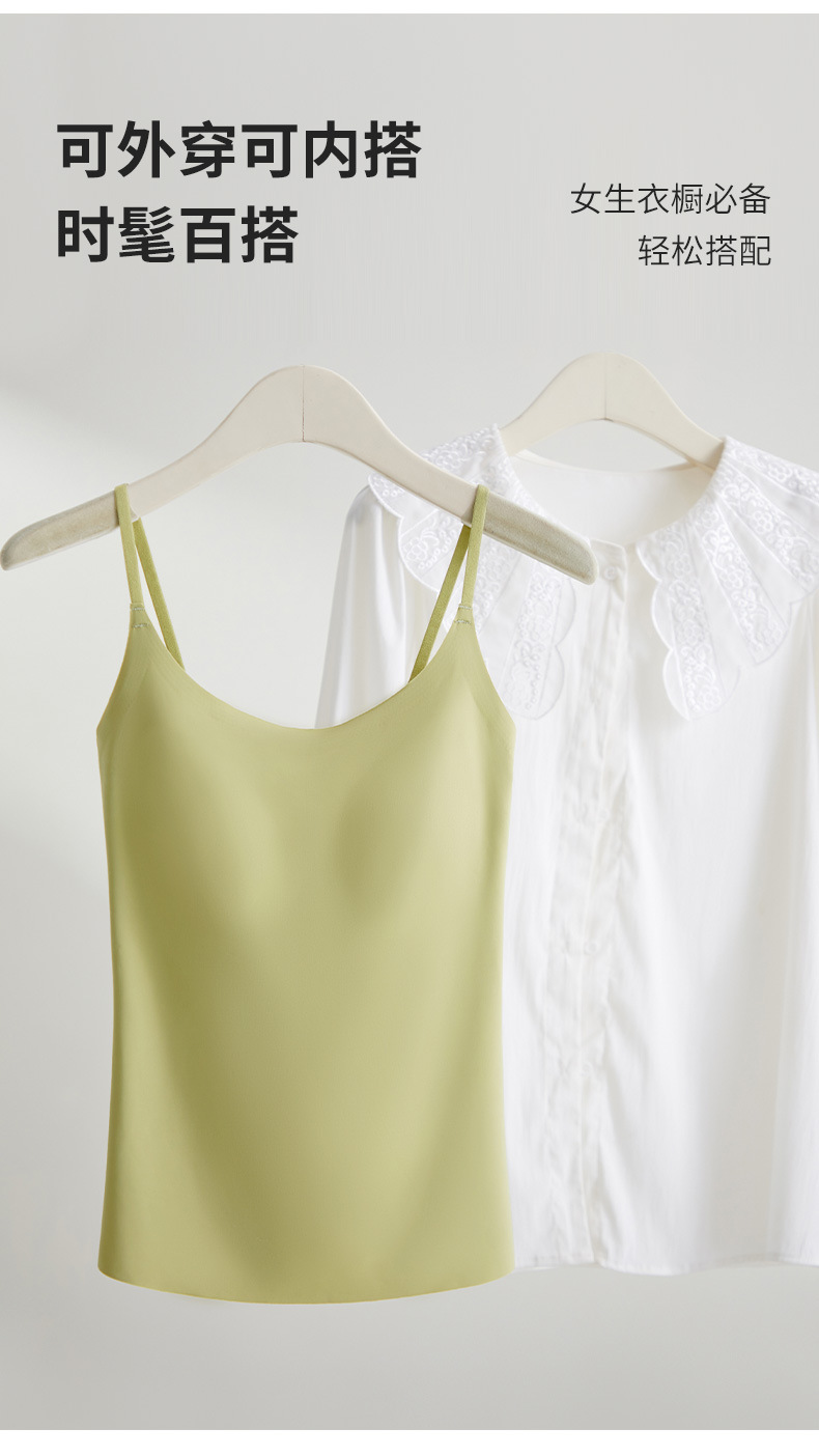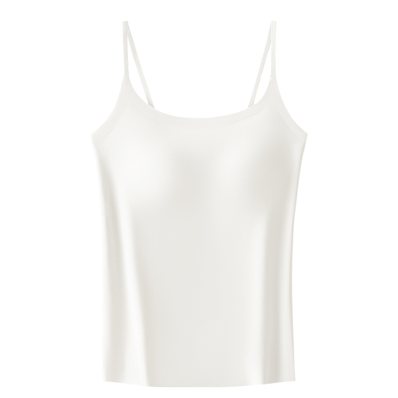 작은 스트랩 조끼 스타일 여성의 여름 얇은 내복 뷰티 백 원활한 가슴 패드 원피스 바닥 겉옷 탑 화이트