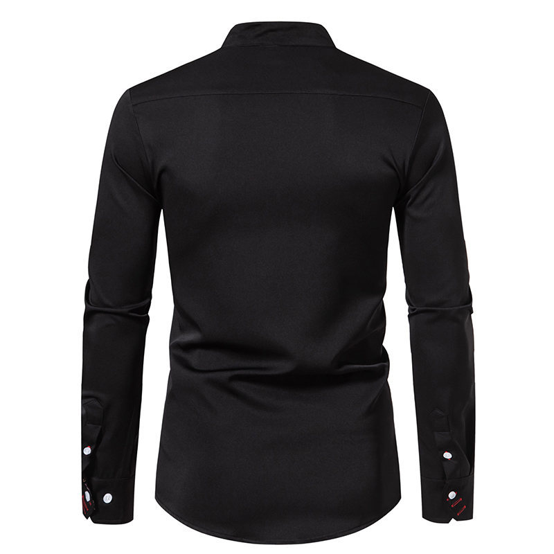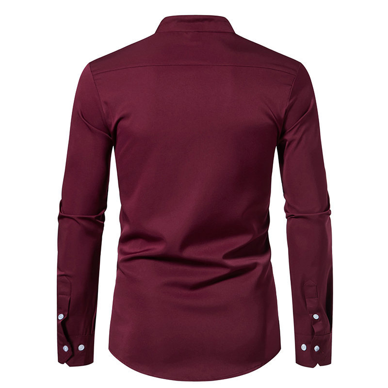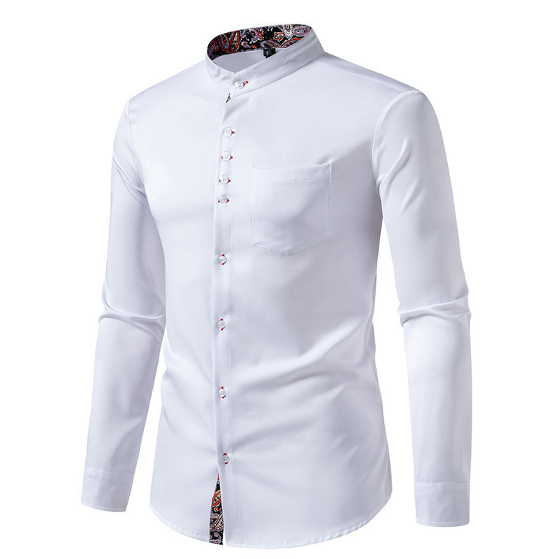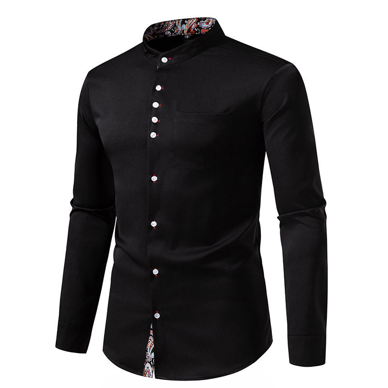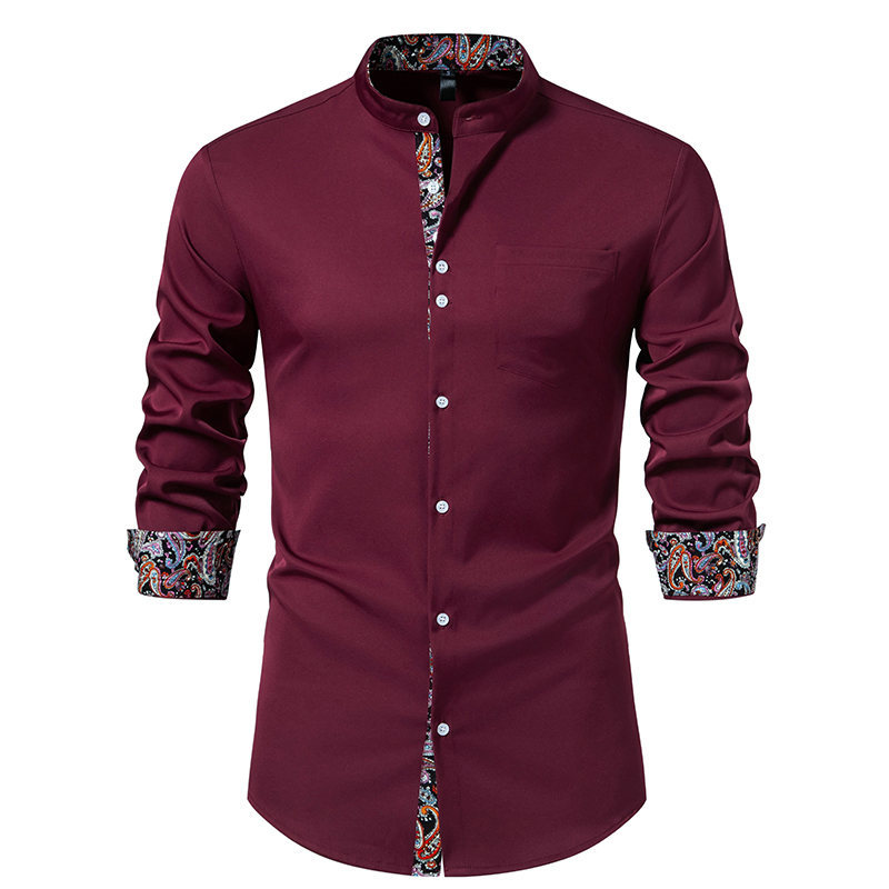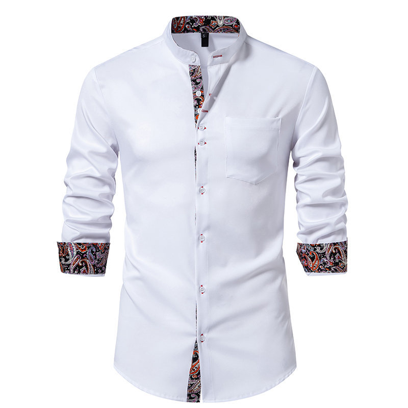국경 간 대외 무역 도매 아마존 봄과 여름 새로운 헨리 칼라 캐슈 꽃 색상 일치 유럽 크기 남성 긴팔 셔츠스토어 가기