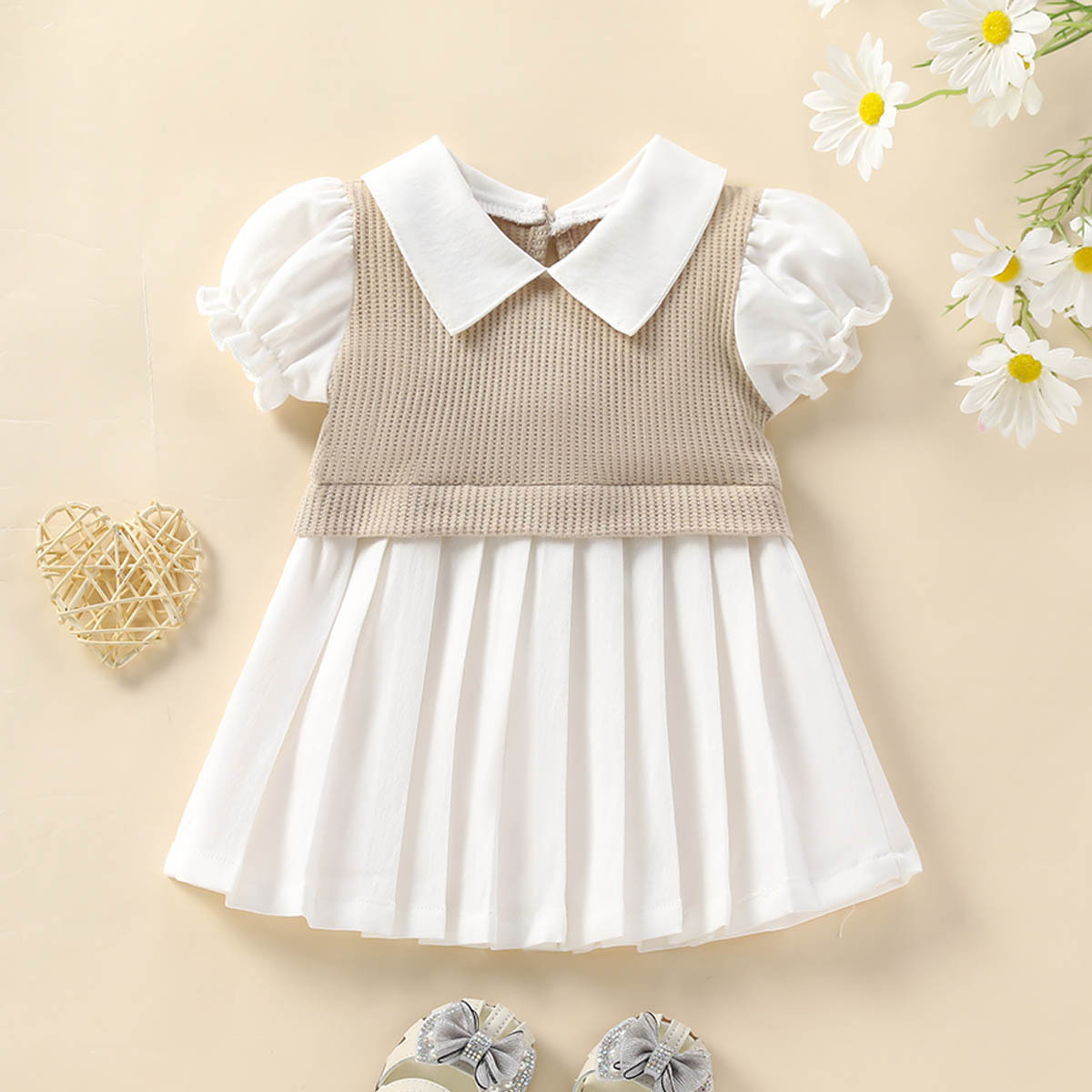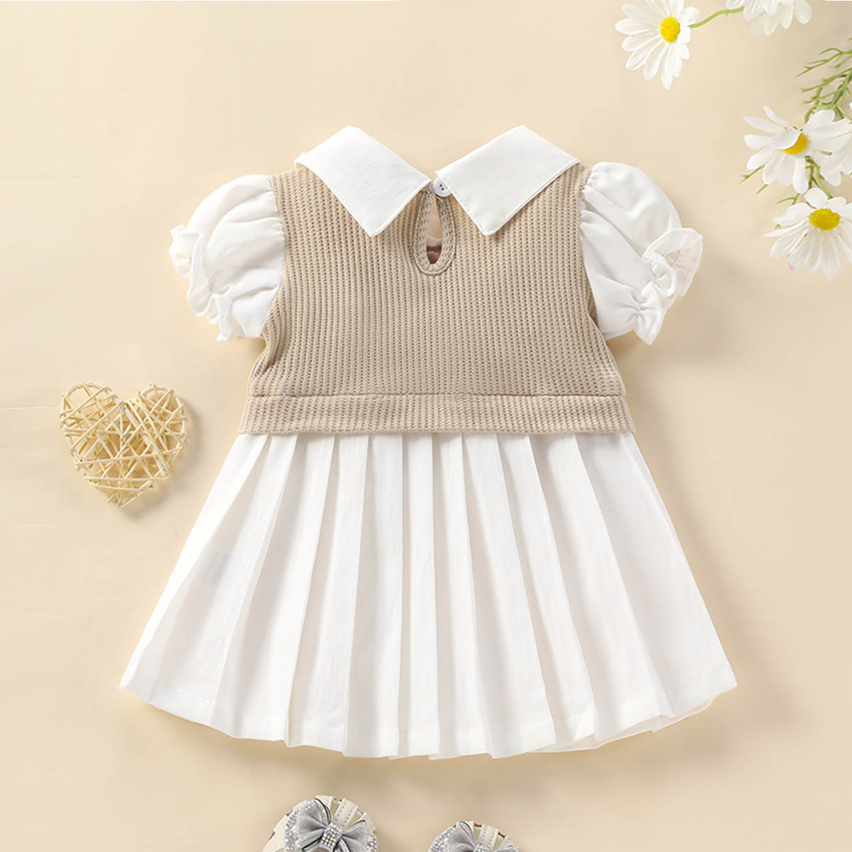대외 무역 새로운 여름 소녀 짧은 소매 V 넥 퍼프 소매 단색 주름 치마 유아 및 어린이 원피스 국경 독점스토어 가기