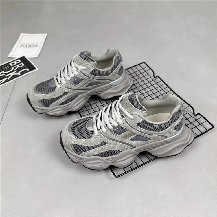 [아만노] 여성용 정품 가죽 아빠 신발 2024 봄 두꺼운 밑창 메쉬 통기성 러닝 캐주얼 운동화 여성용 다용도