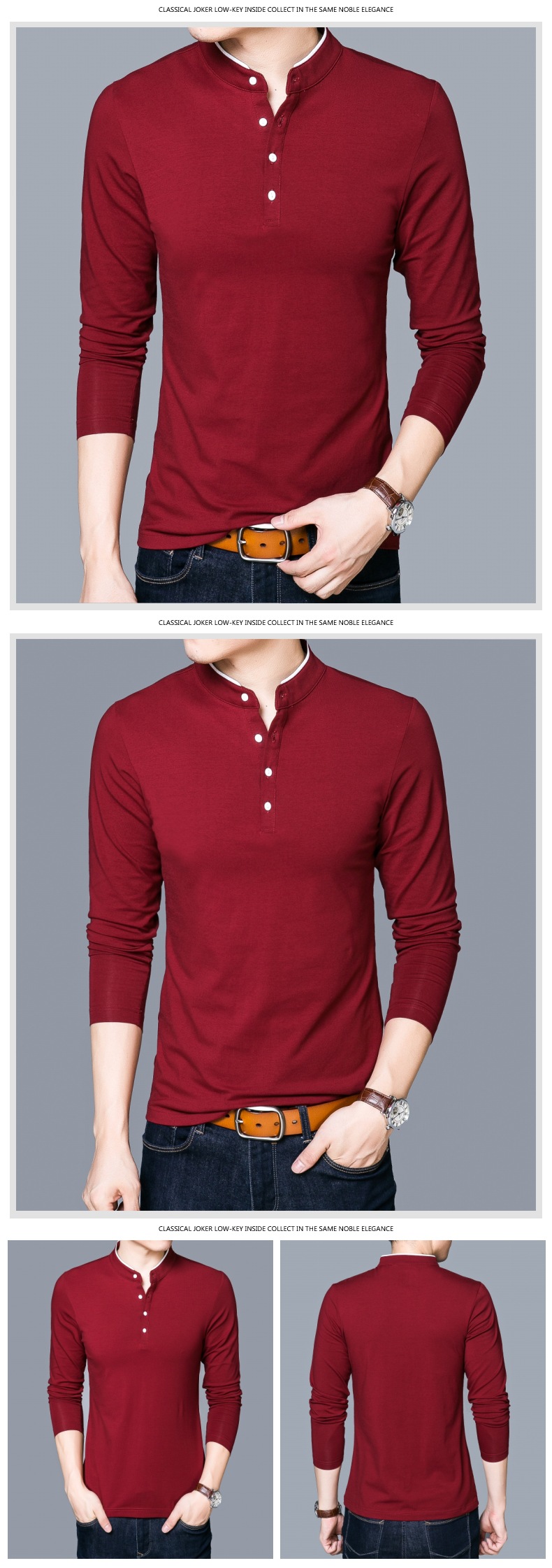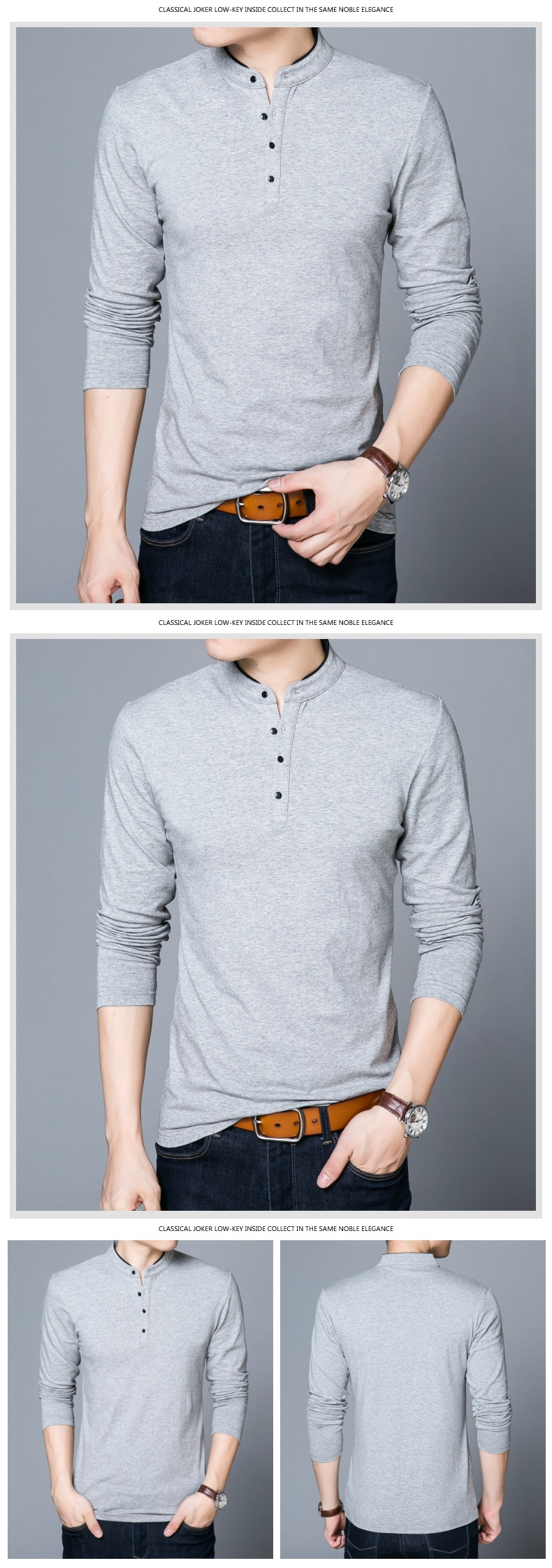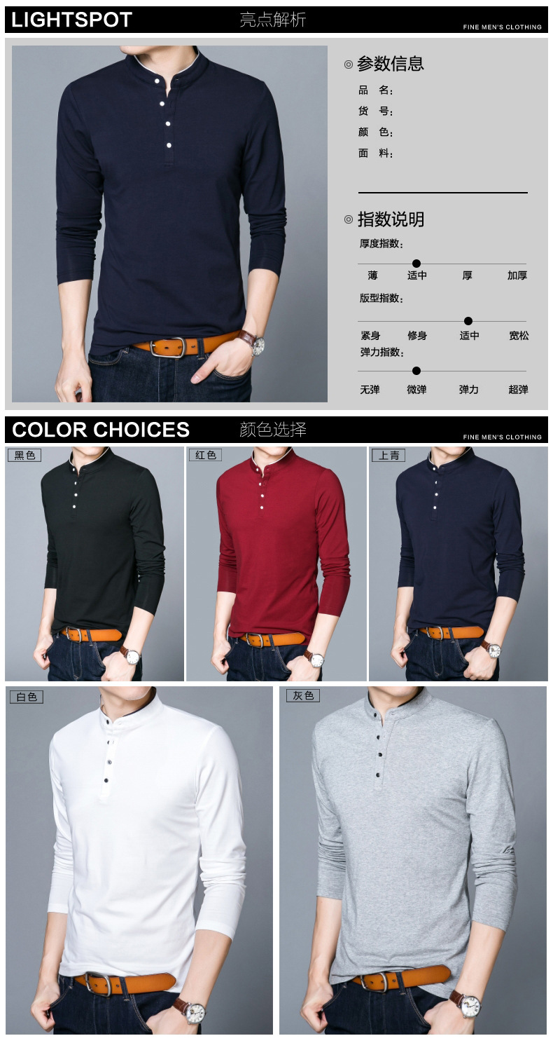 순면 긴팔 티셔츠 남성용 봄 가을 한국 스타일 슬림핏 패션 이너웨어 순면 가을옷 단색 다용도 중년 및 청년용스토어 가기
