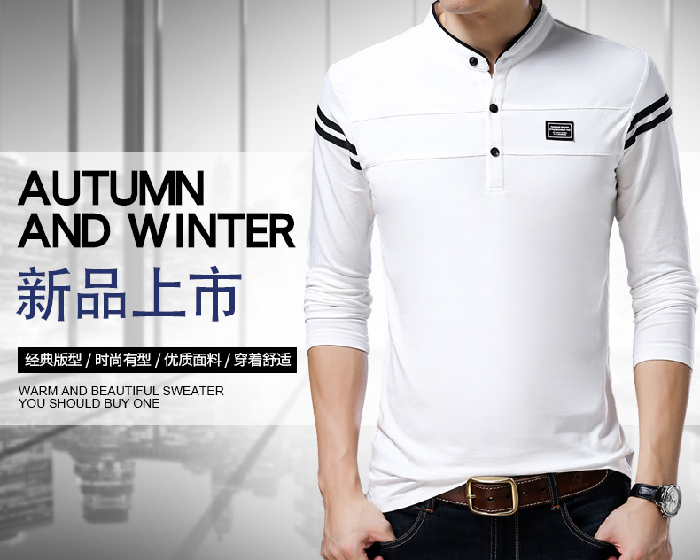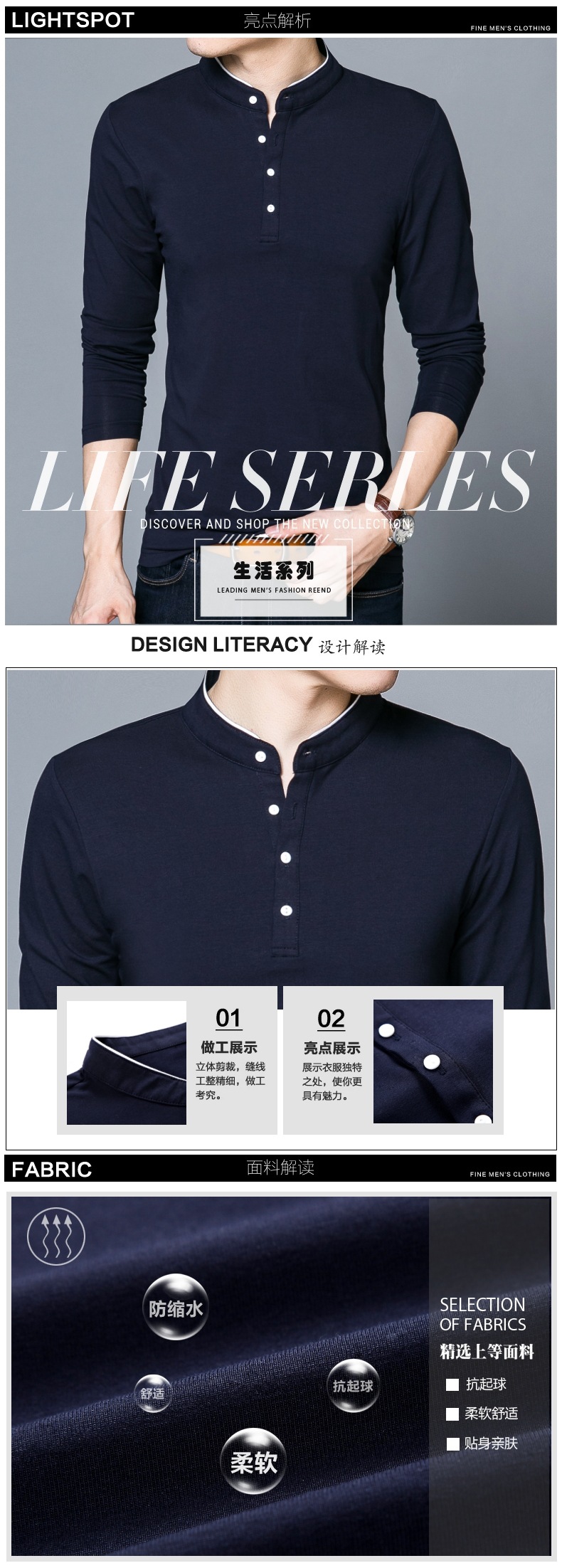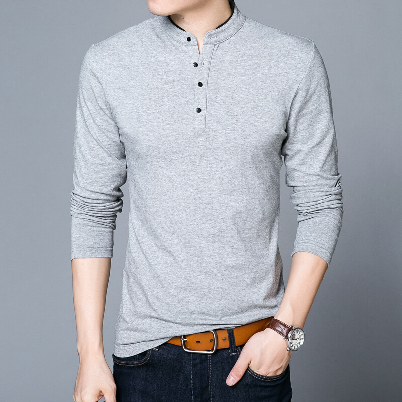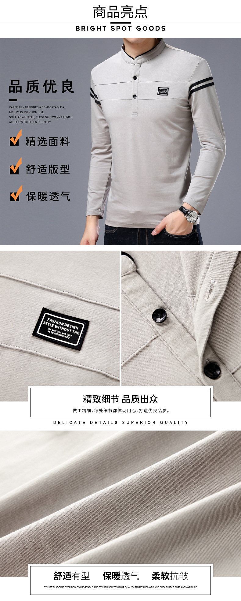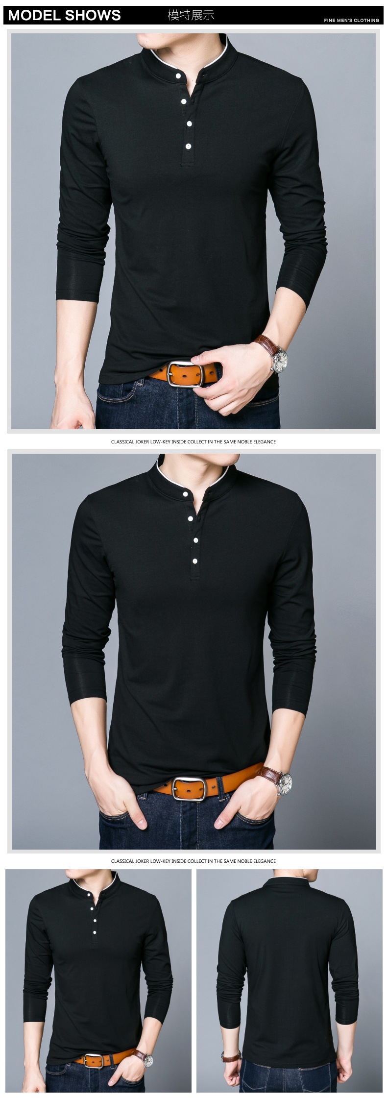 순면 긴팔 티셔츠 남성용 봄 가을 한국 스타일 슬림핏 패션 이너웨어 순면 가을옷 단색 다용도 중년 및 청년용스토어 가기