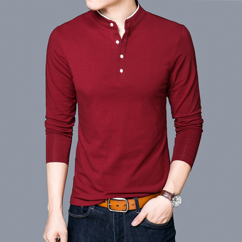 순면 긴팔 티셔츠 남성용 봄 가을 한국 스타일 슬림핏 패션 이너웨어 순면 가을옷 단색 다용도 중년 및 청년용