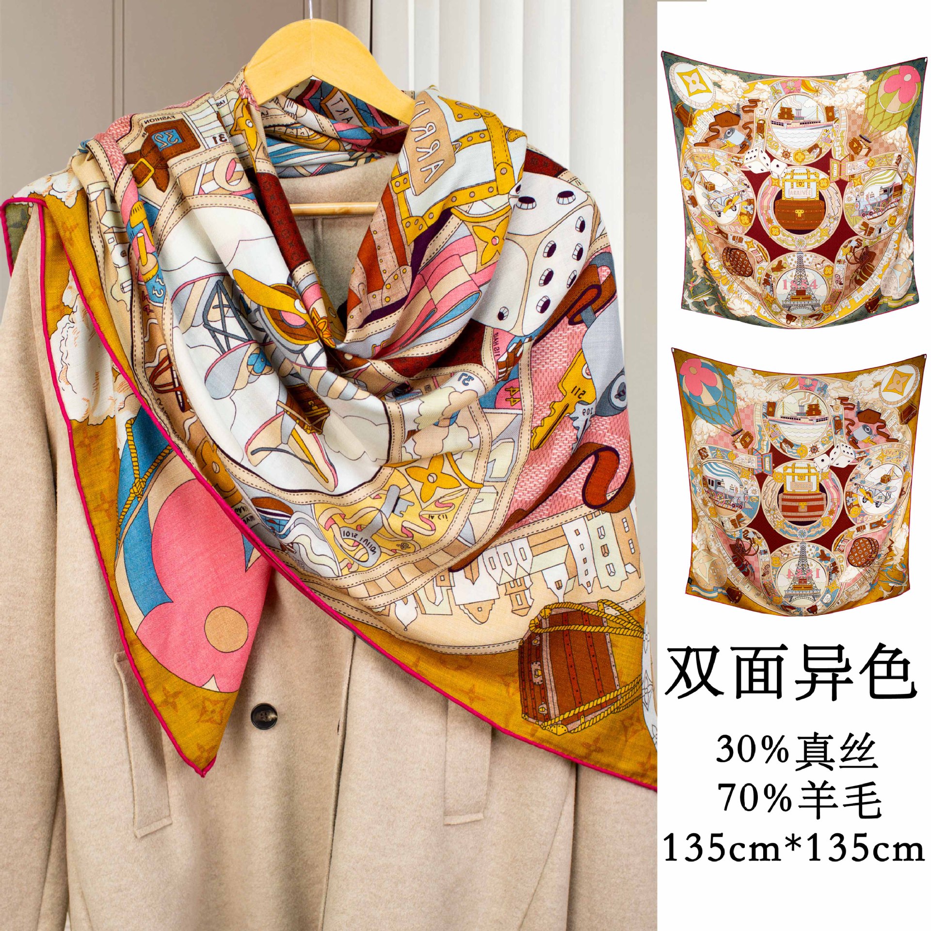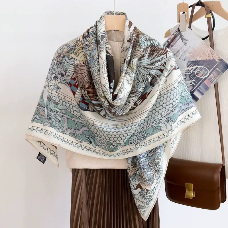실크 울 대형 숄 양면 컬렉션 패셔너블한 여성 숄 실크 스카프 공장 직판스토어 가기