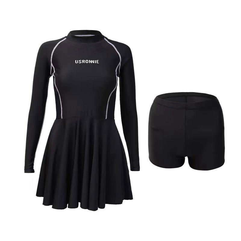 신형 수영복 여성 스플릿 스커트 스타일 플랫 코너 긴 소매 보수 슬림 벨리 커버 학생 대형 스포츠 한국 온천스토어 가기