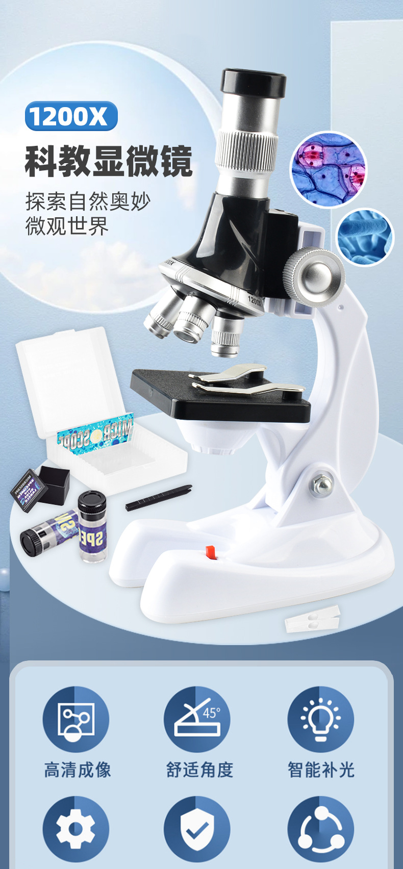 국경 간 공급 어린이 현미경 과학 및 교육 국경 교정 1200 배 돋보기 과학 작은 실험 교육 장난감스토어 가기