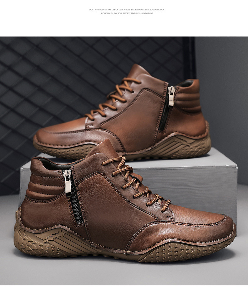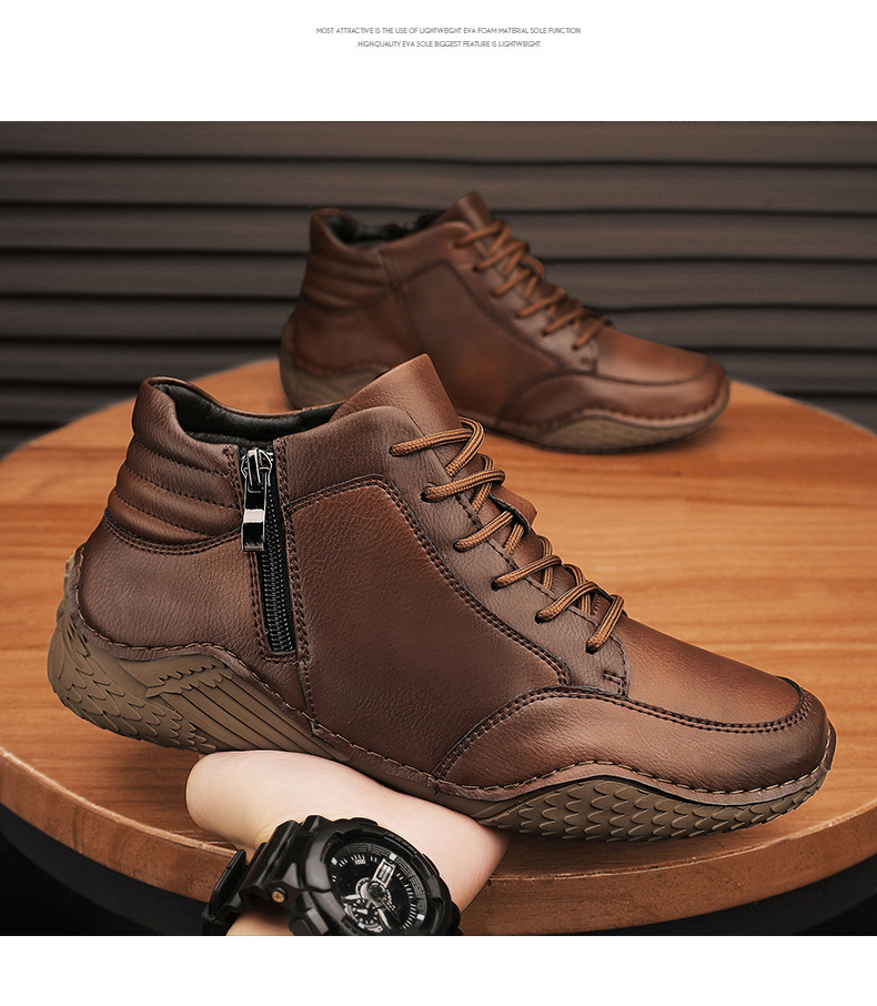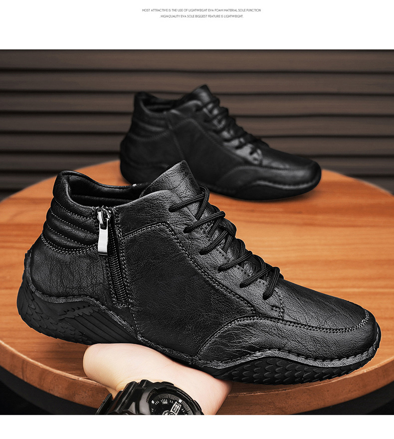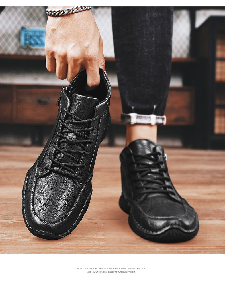 2026 겨울 신상 마틴 부츠 트렌디한 가죽 캐주얼 하이탑 가죽신발 봄가을 소가죽 비니슈즈 남성용 플리스 안감 면화신발