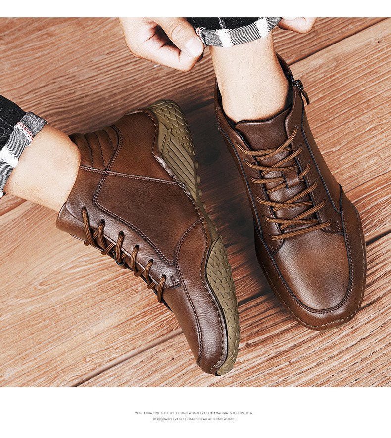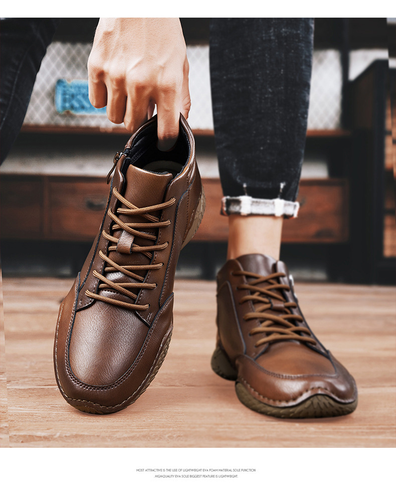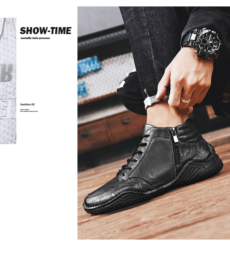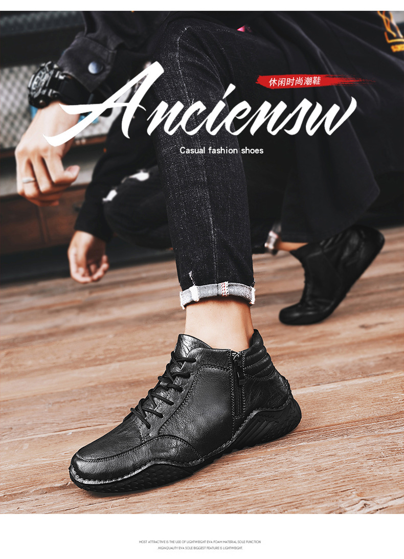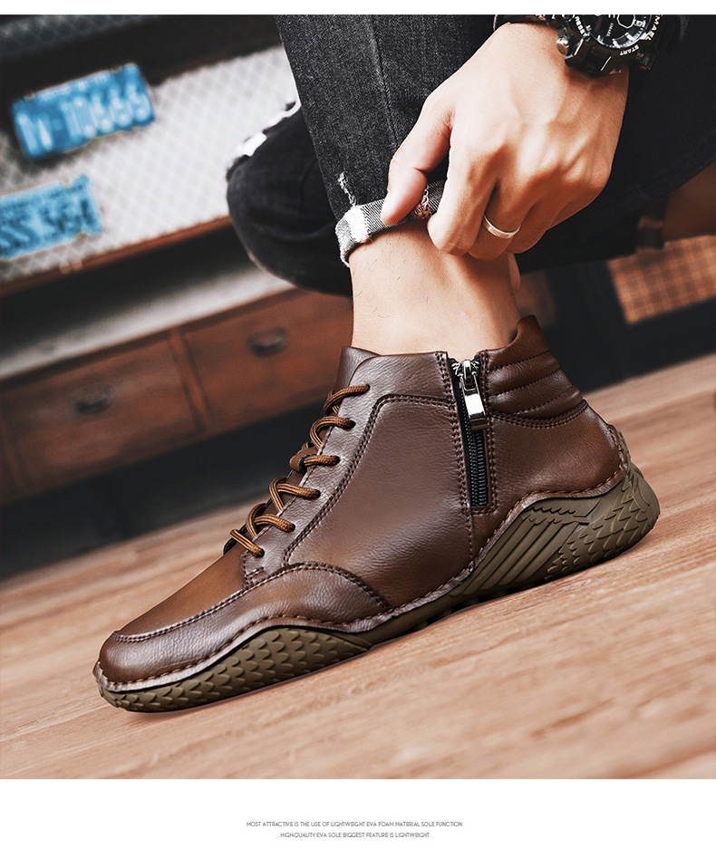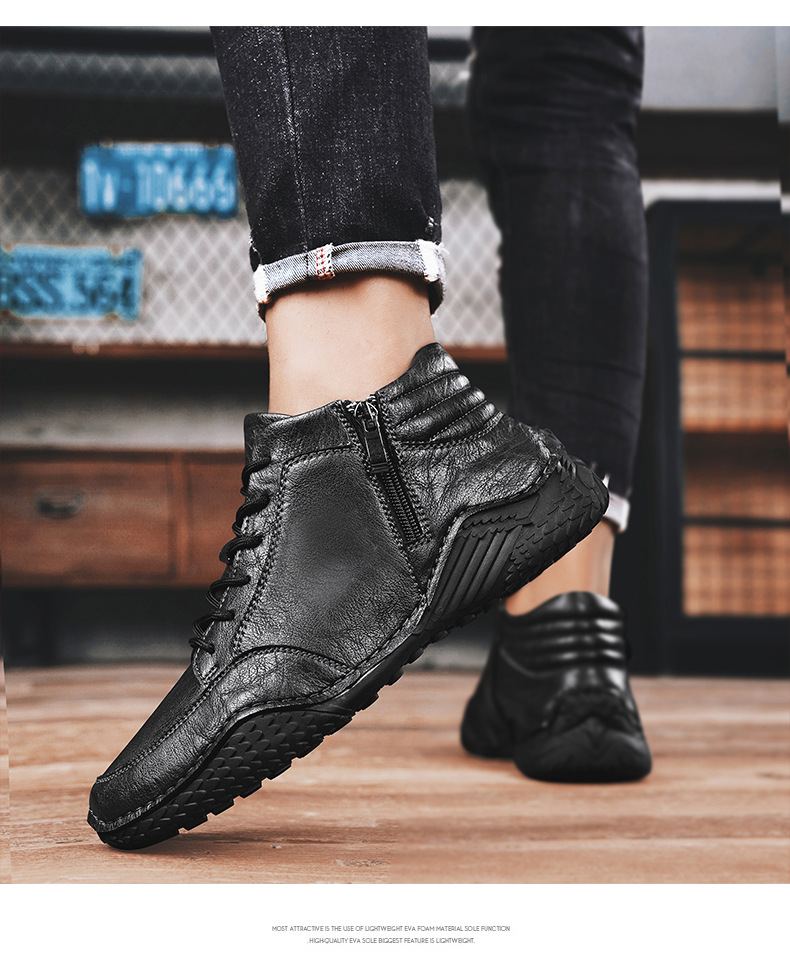 2026 겨울 신상 마틴 부츠 트렌디한 가죽 캐주얼 하이탑 가죽신발 봄가을 소가죽 비니슈즈 남성용 플리스 안감 면화신발스토어 가기