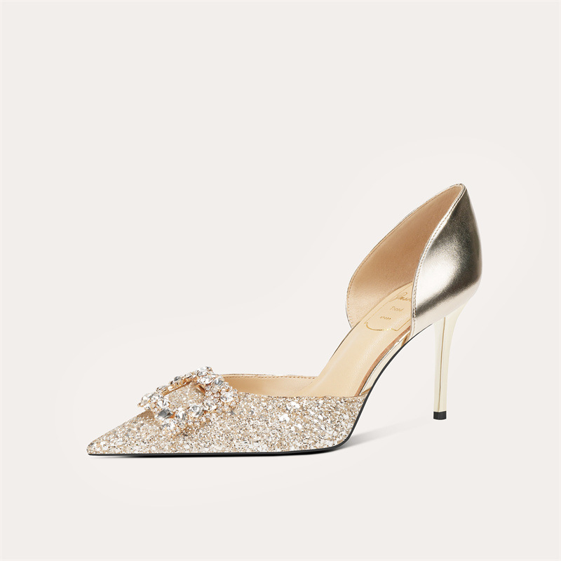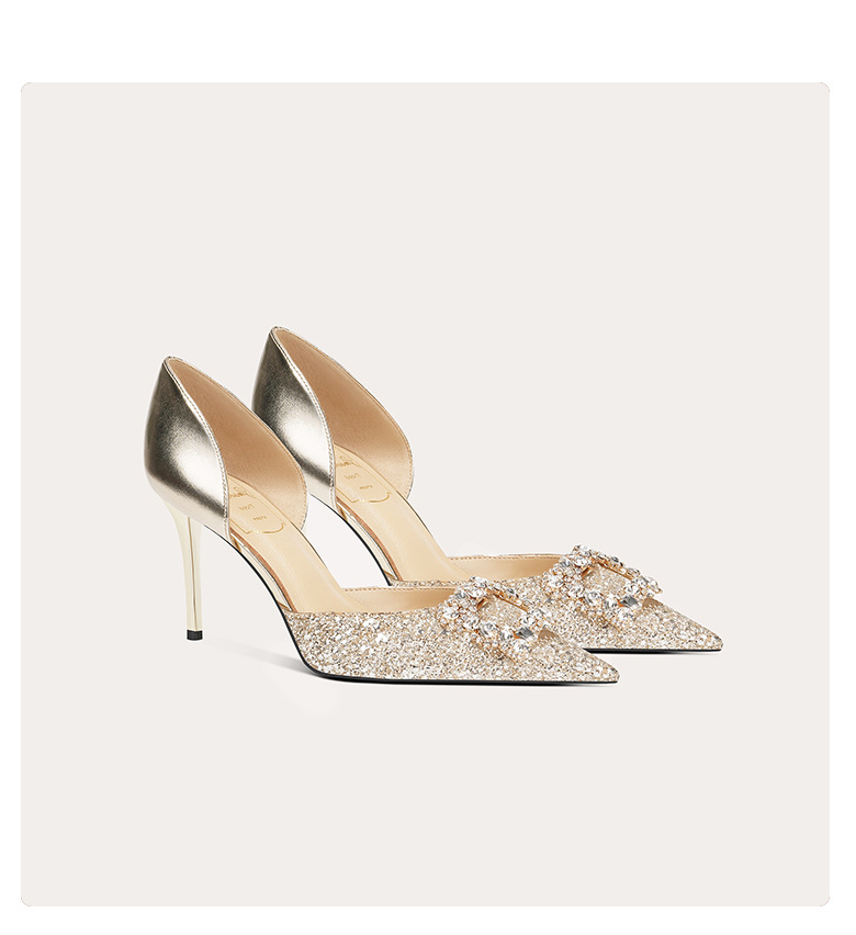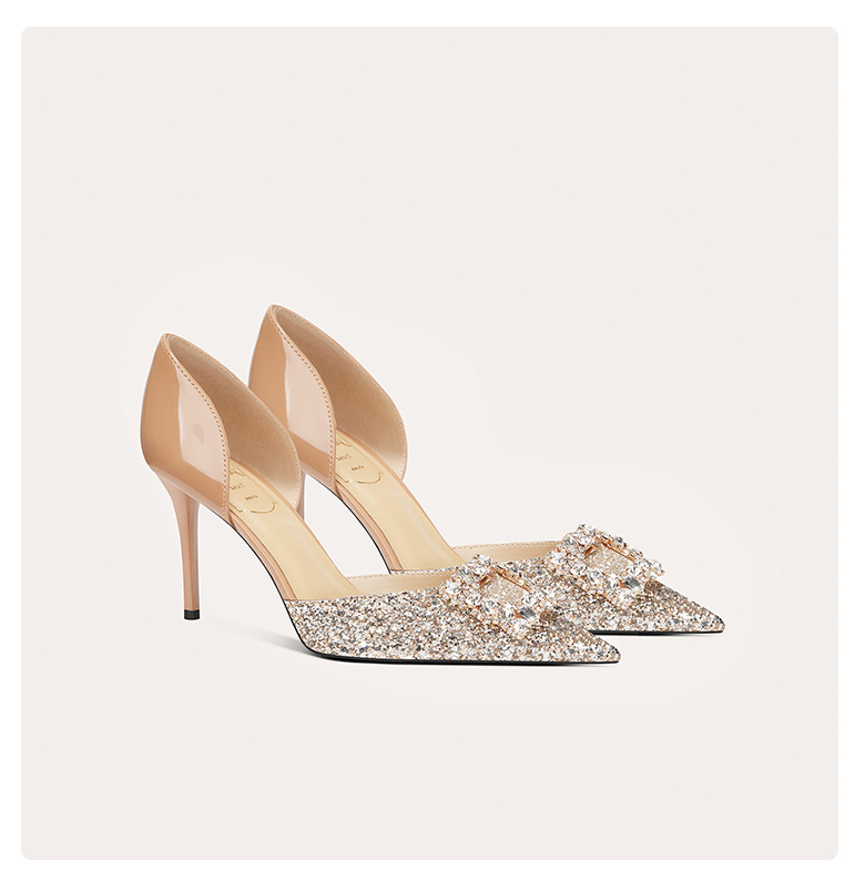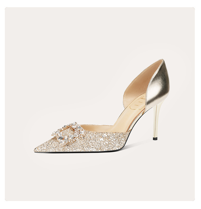 708-A65 중공 버클 라인 스톤 신부 신발 Xiuhe 원피스 신부 들러리 프렌치 스틸레토 힐 디너 하이힐 싱글 레이어 신발 여성용