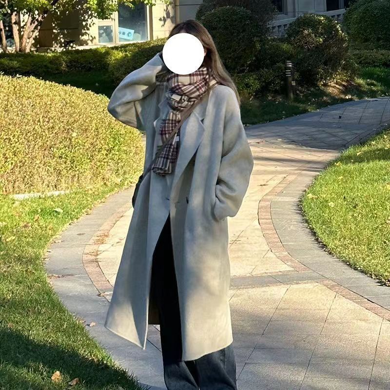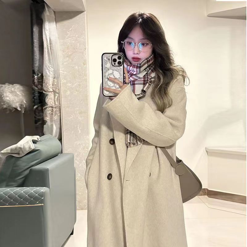 2024 가을과 겨울 중간 길이의 무릎 위 작은 샤넬 스타일 모직 코트 여성 고급 영국 작은 모직 코트 트렌디스토어 가기
