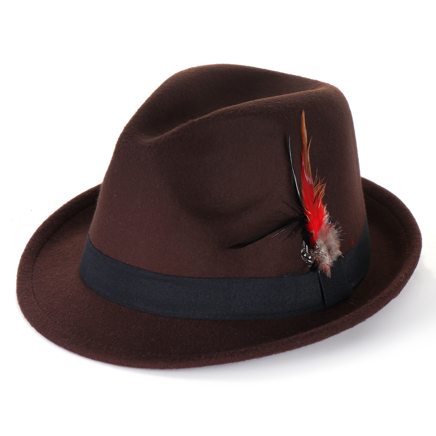 유럽과 미국의 새로운 남성과 여성의 깃털 모자 영국 스타일은 세련된 올 매치 모직 레트로 신사 모자를 느꼈다.