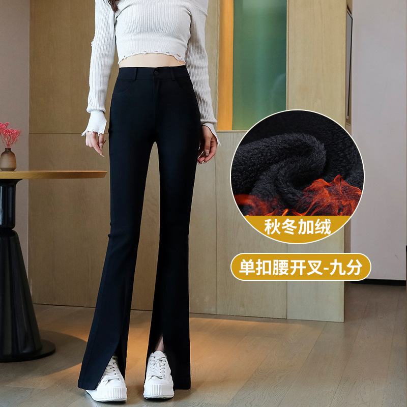 • 벨벳 싱글버튼 슬릿 부츠컷 팬츠 [블랙 나인포인트 스타일]