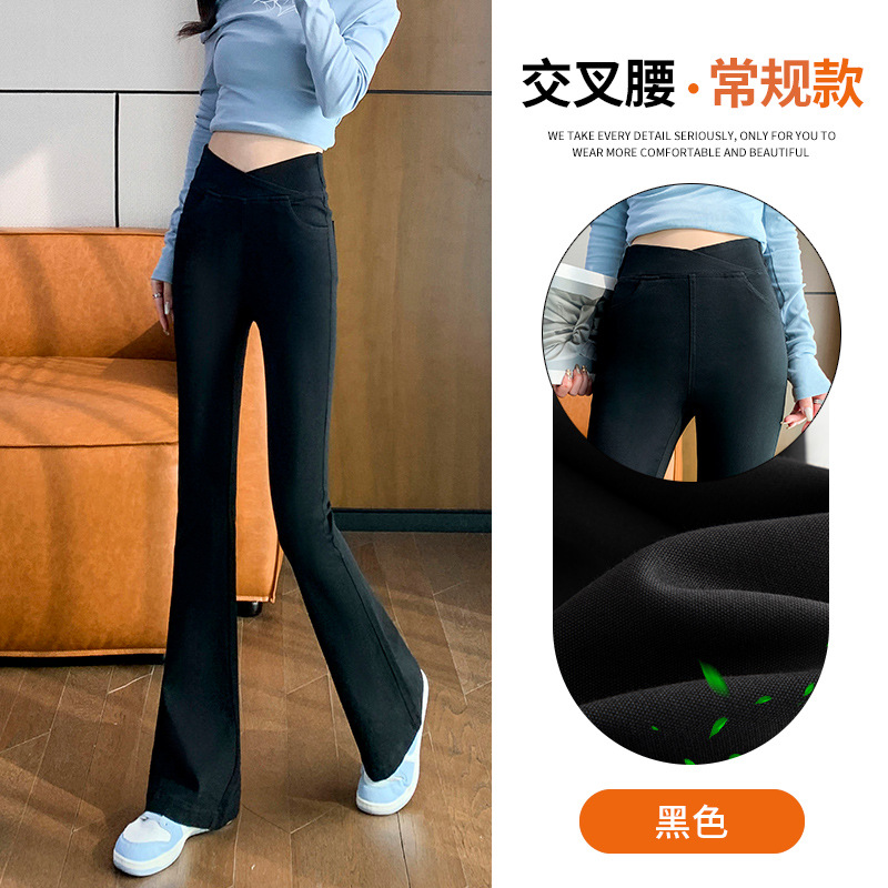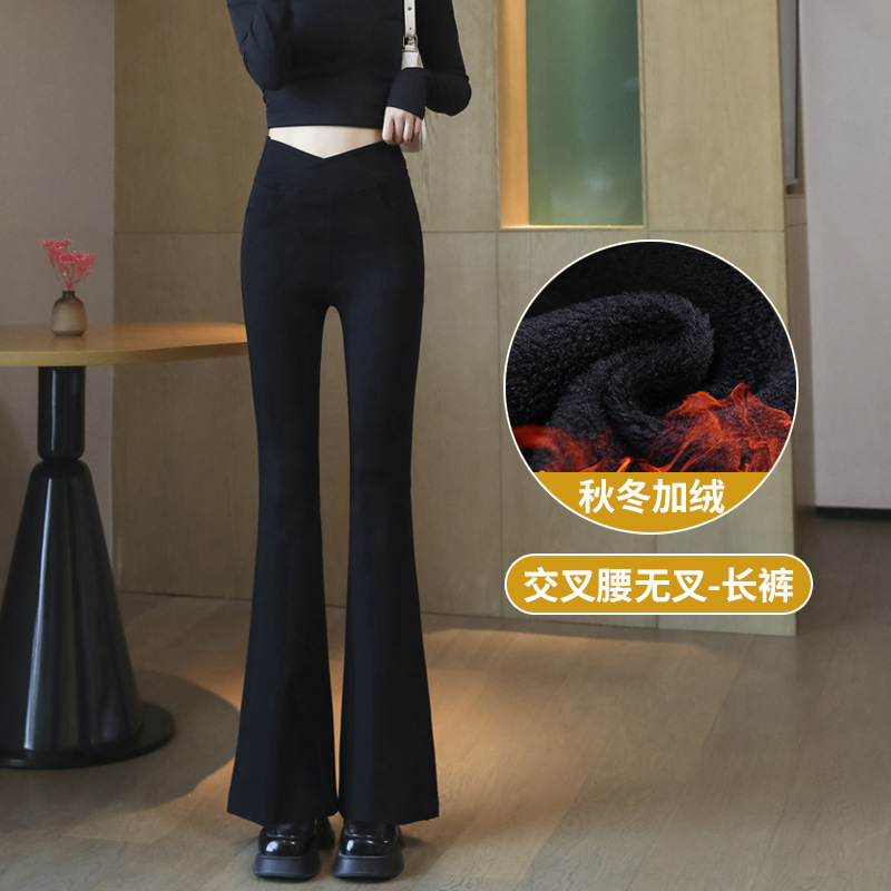 • 슬릿이 없는 벨벳 크로스 웨이스트 부츠컷 팬츠 [블랙 나인포인트 팬츠]