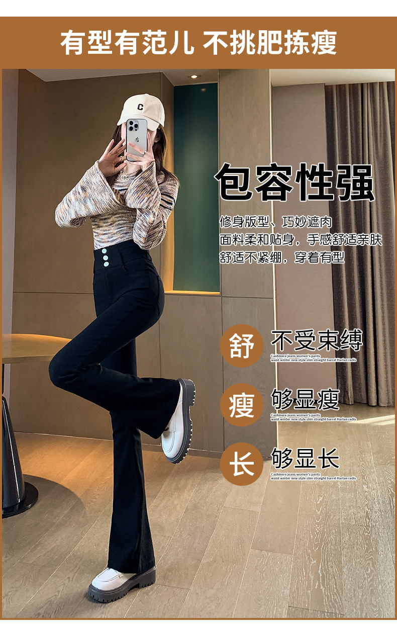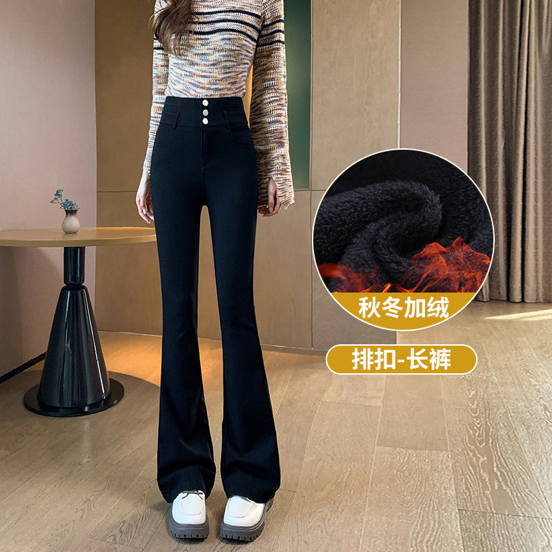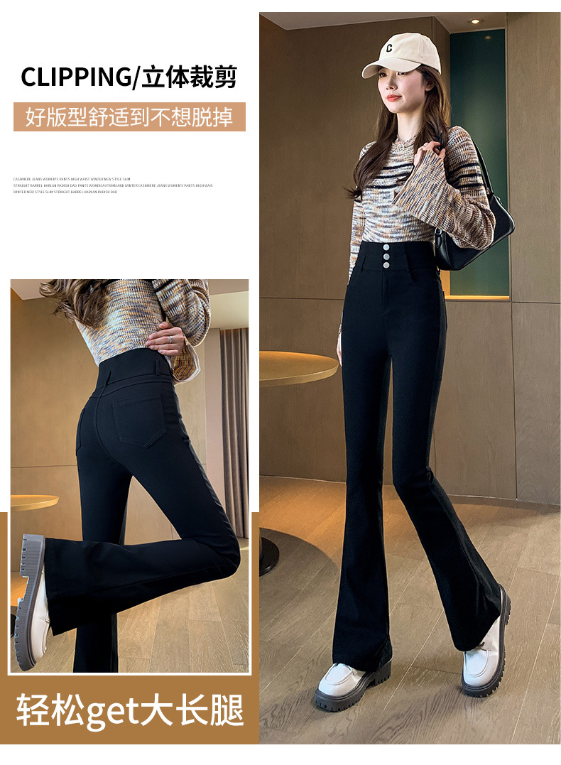 • 벨벳 하이웨이스트 3버튼 부츠컷 팬츠 [블랙 팬츠]