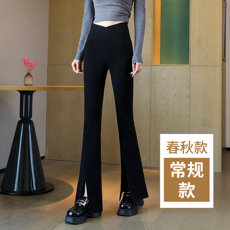 여성용 청바지 블랙 벨 바닥 여성용 하이 웨스트 2022 인기 봄, 가을 약간 플레어 슬리밍 슬릿 말굽 바지 여성용스토어 가기