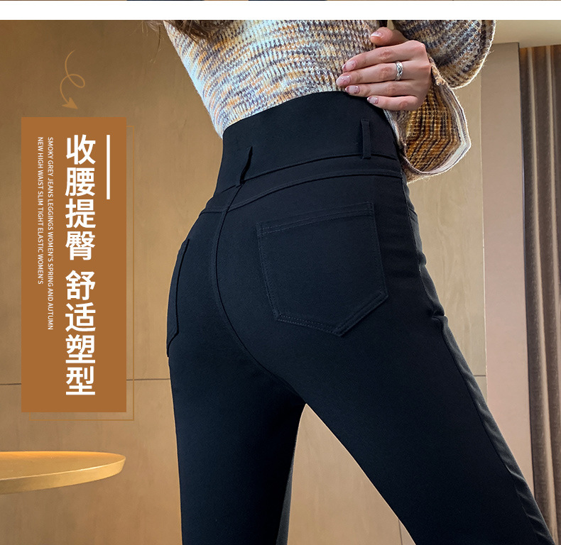 • 높은 허리 세 버튼 마이크로 바지 [연기 회색 9 점]