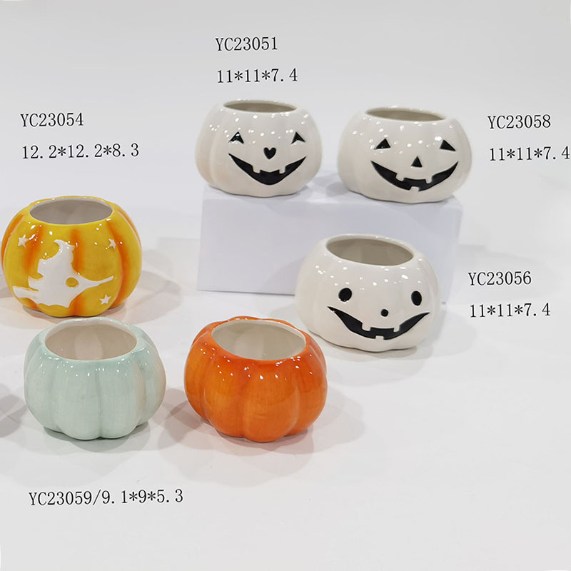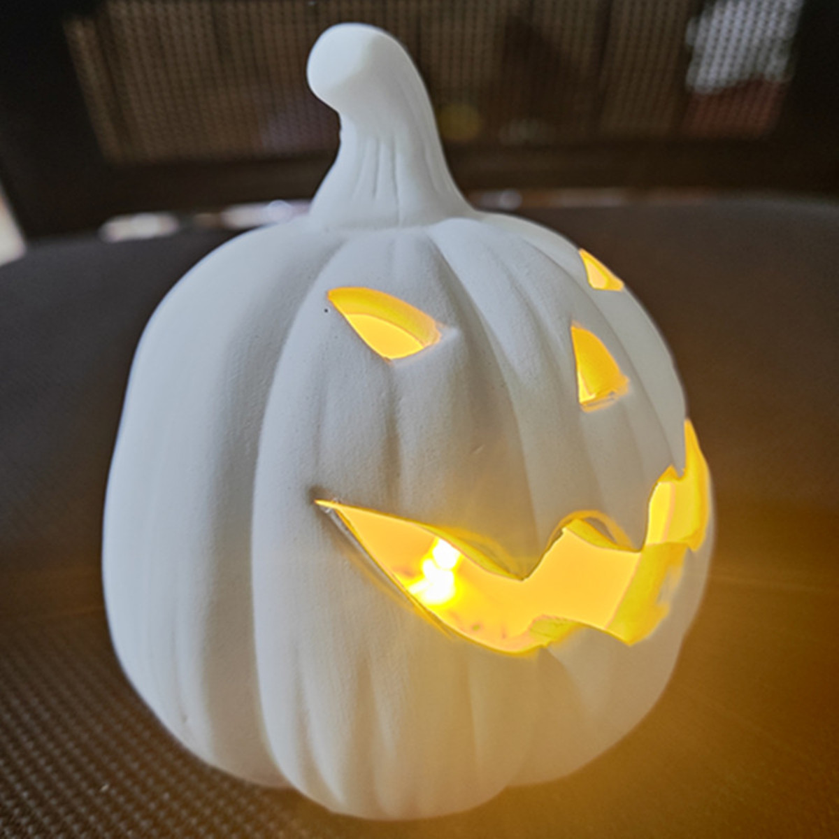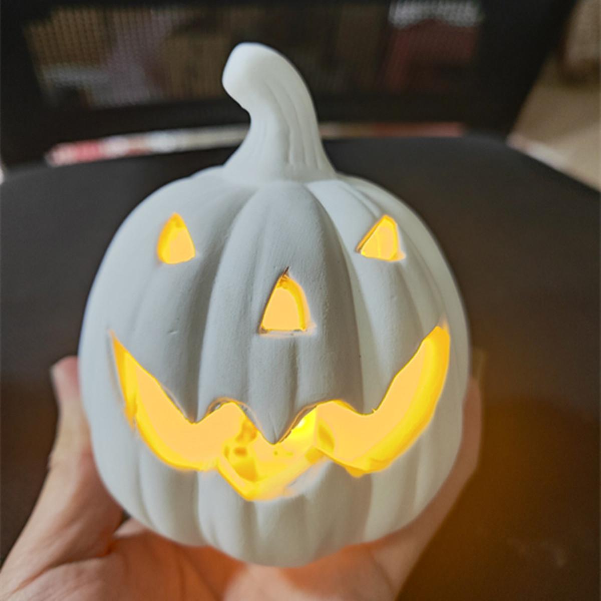유령 축제 할로윈 장식 속이 빈 세라믹 대외 무역 공예 흰색 유령 얼굴 호박 LED 빛 촛대 장식품스토어 가기