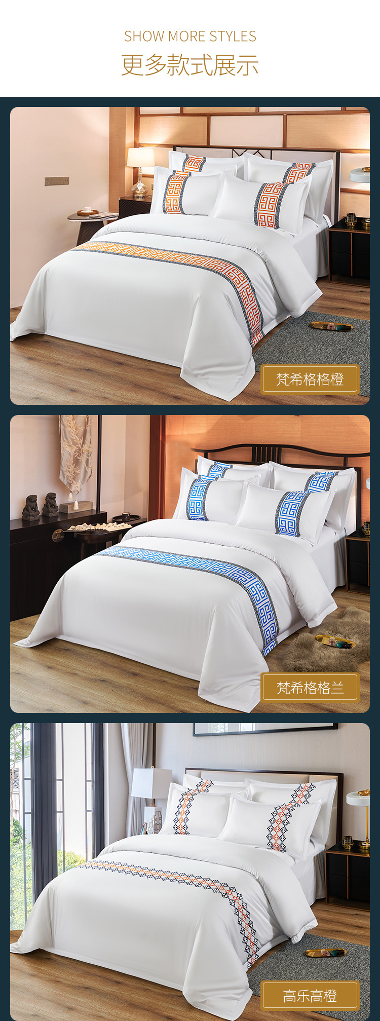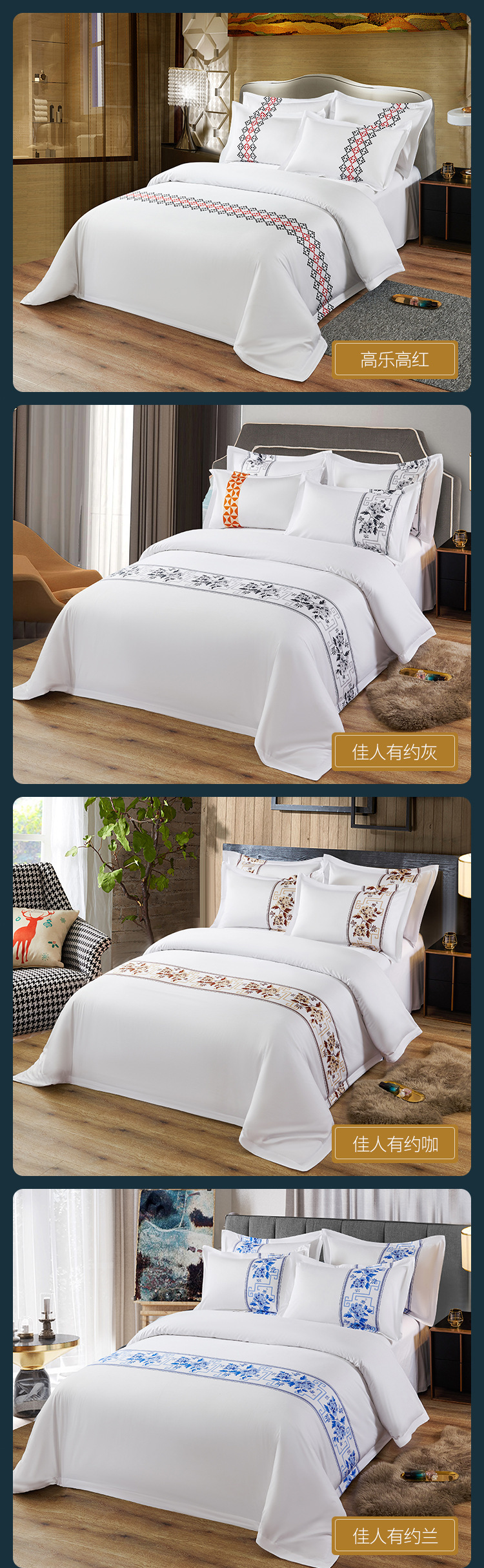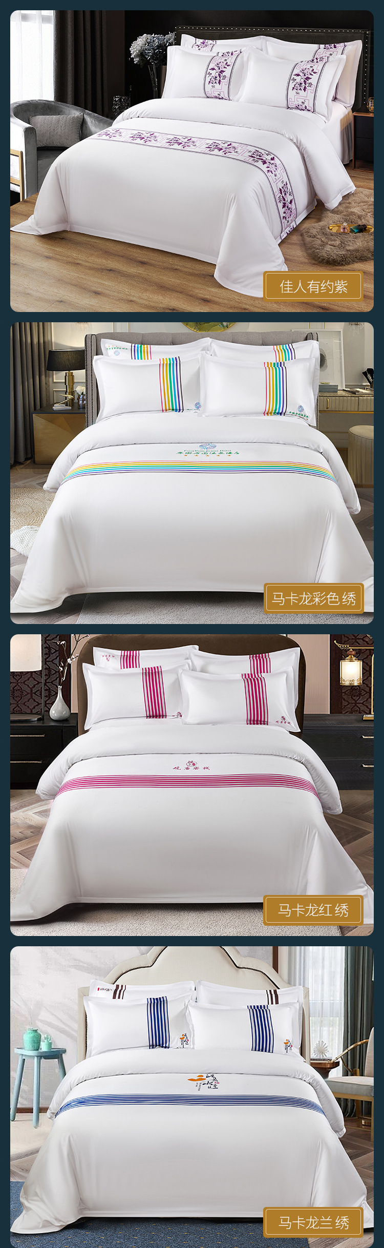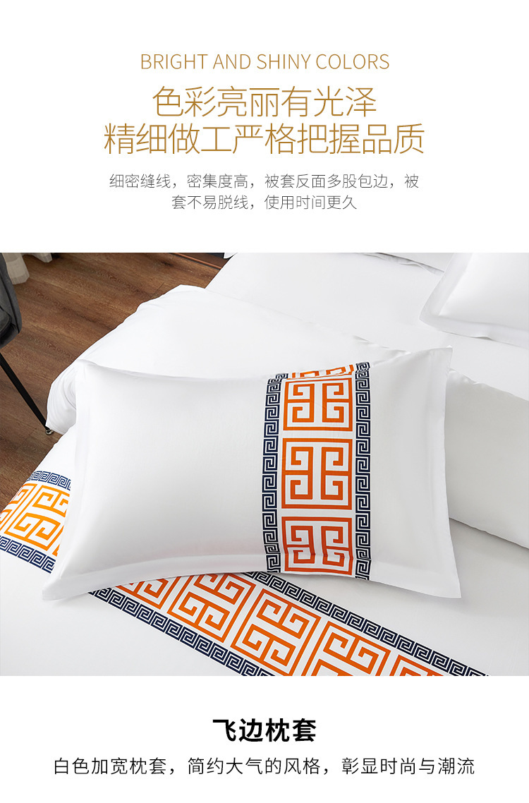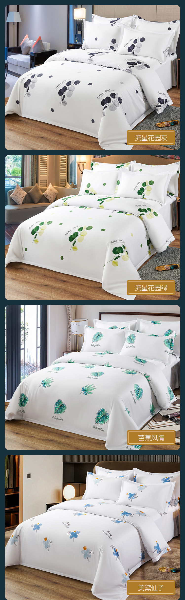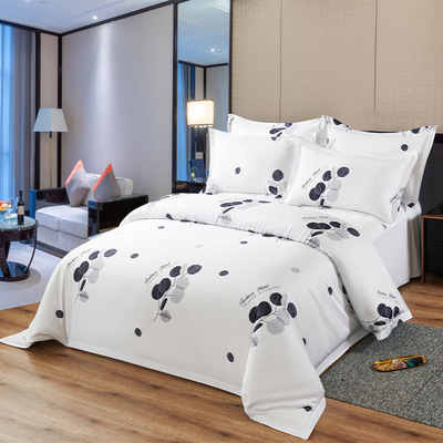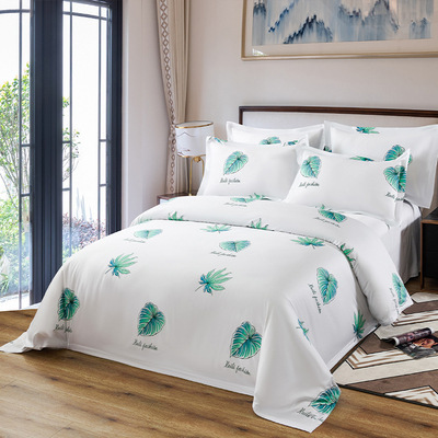 코튼 호텔 4 피스 원사 염색 고급 침구 침대 및 아침 식사 인쇄 퀼트 커버면 흰색 침대 시트스토어 가기