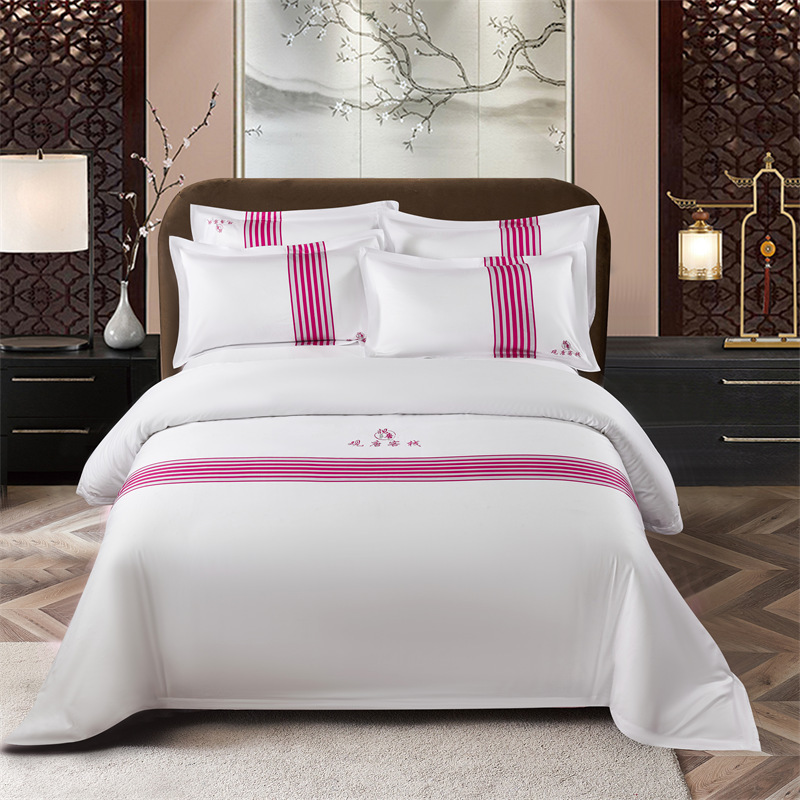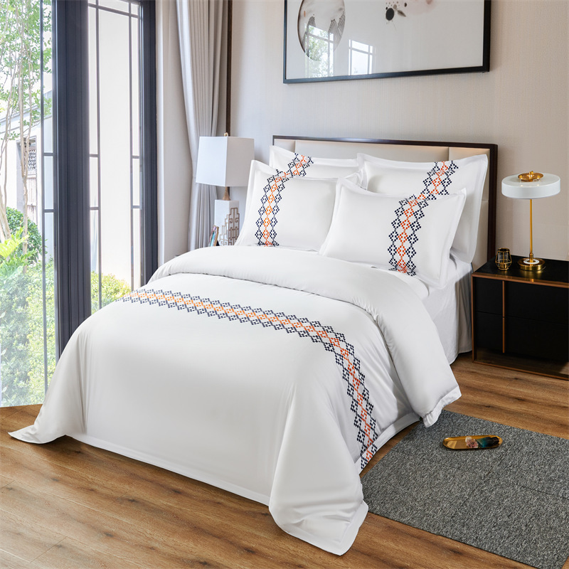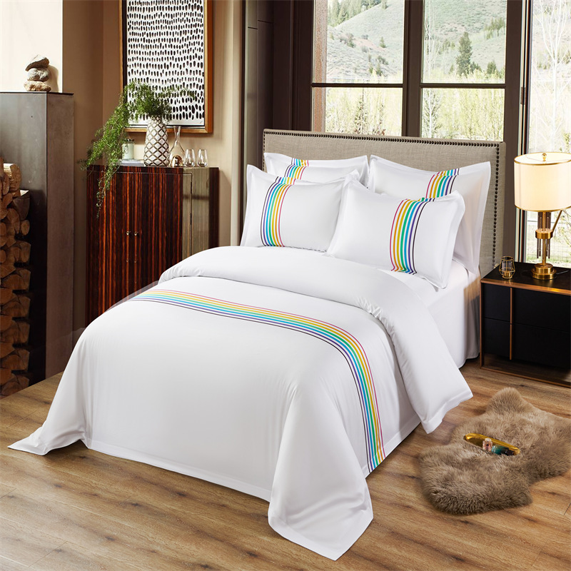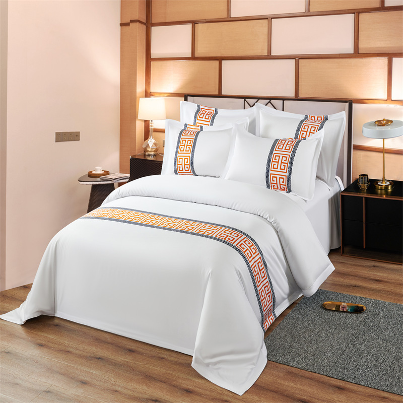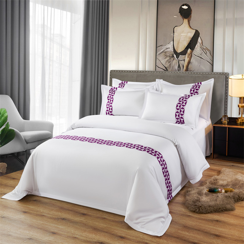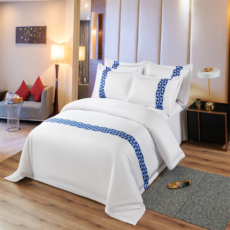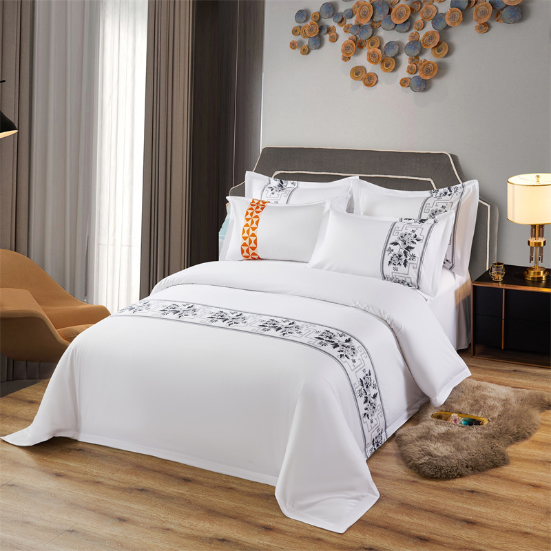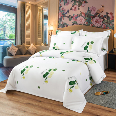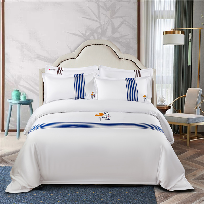 코튼 호텔 4 피스 원사 염색 고급 침구 침대 및 아침 식사 인쇄 퀼트 커버면 흰색 침대 시트