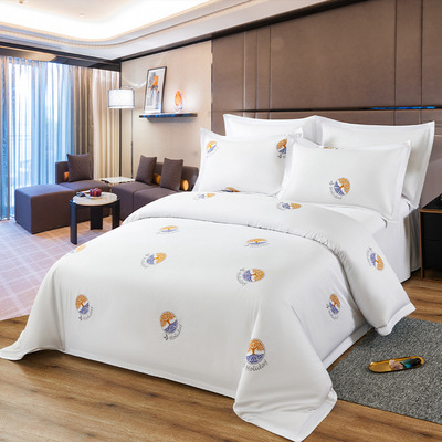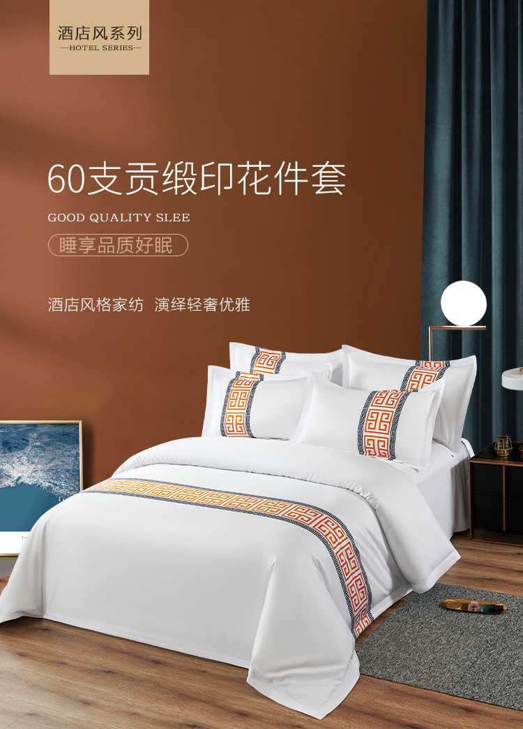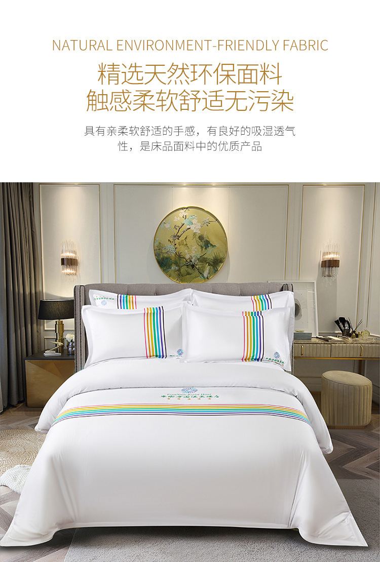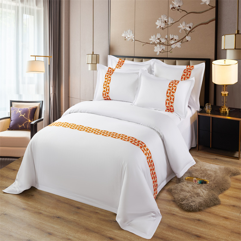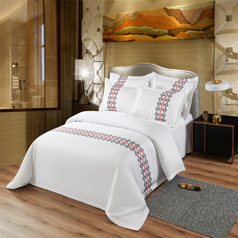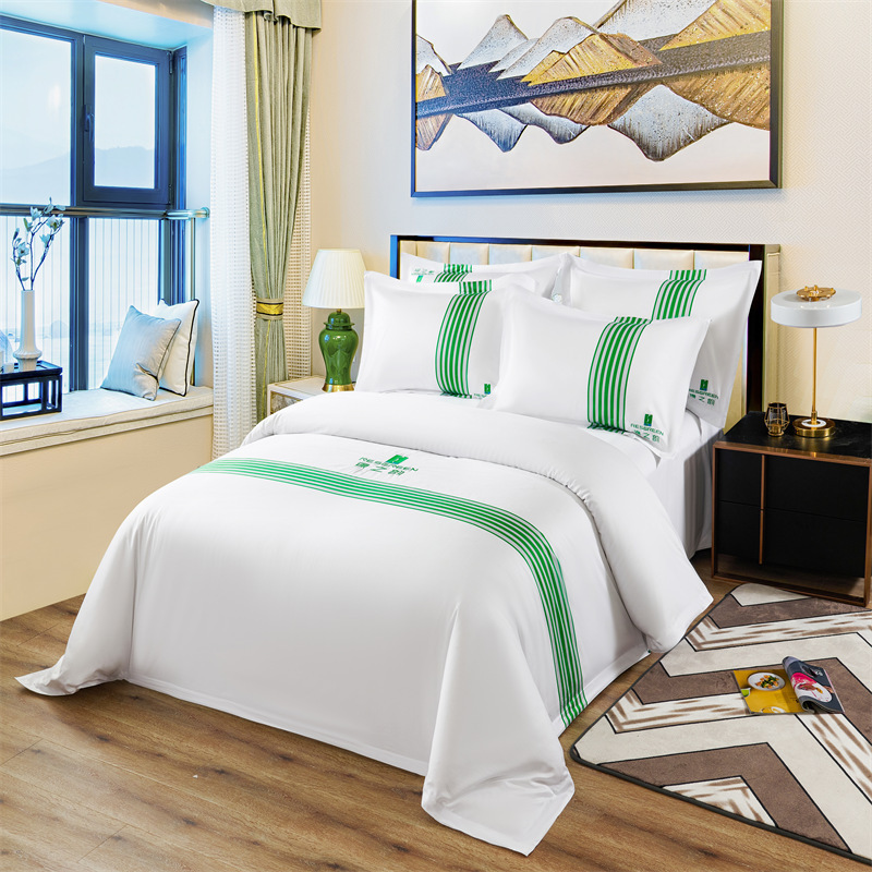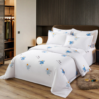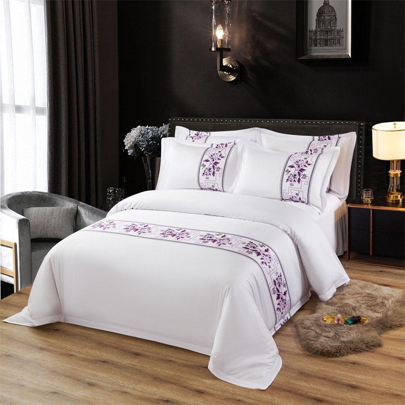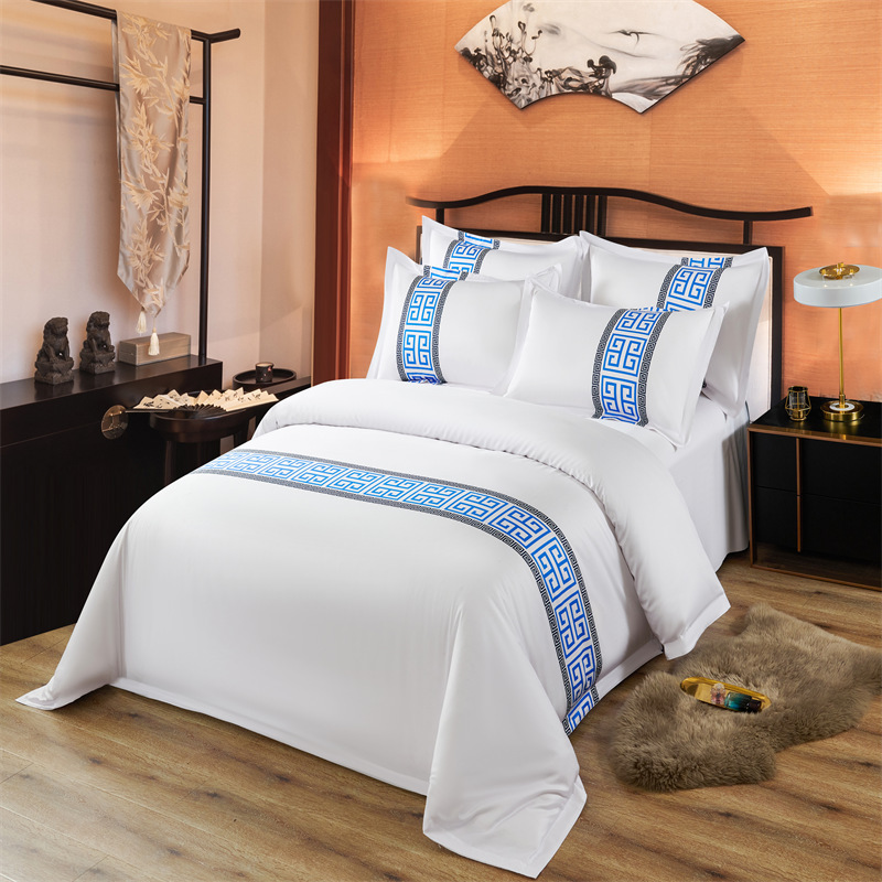 코튼 호텔 4 피스 원사 염색 고급 침구 침대 및 아침 식사 인쇄 퀼트 커버면 흰색 침대 시트