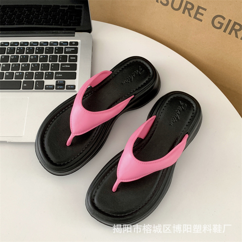 새로운 스타일 통 샌들 여성용 플립 플롭스 하이힐 두꺼운 바닥 두꺼운 외피 패션 올매치 경량 EVA 샌들 여름