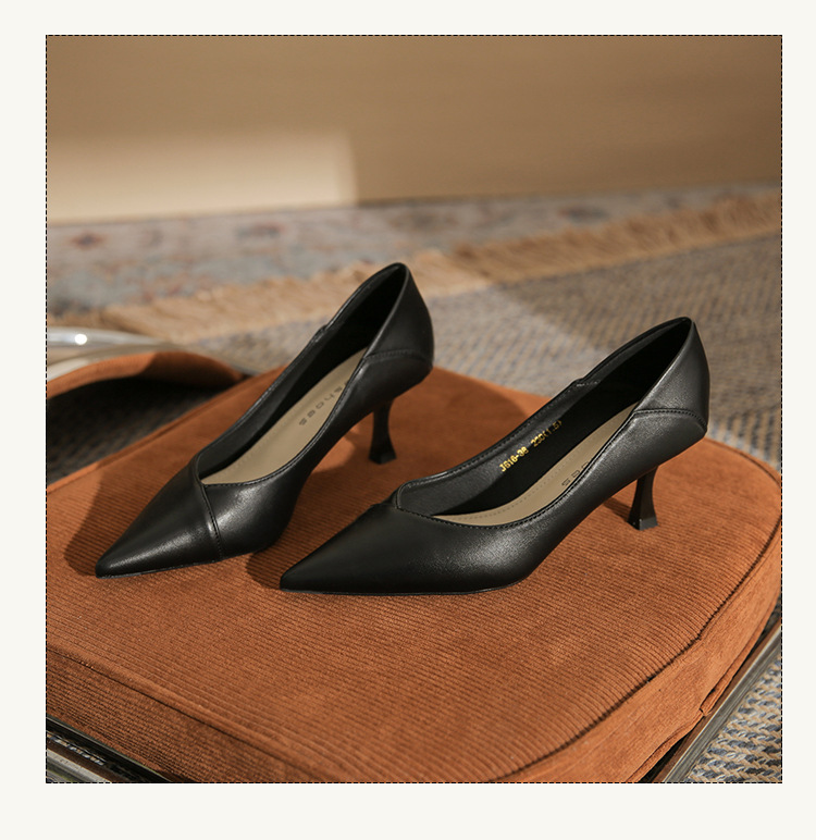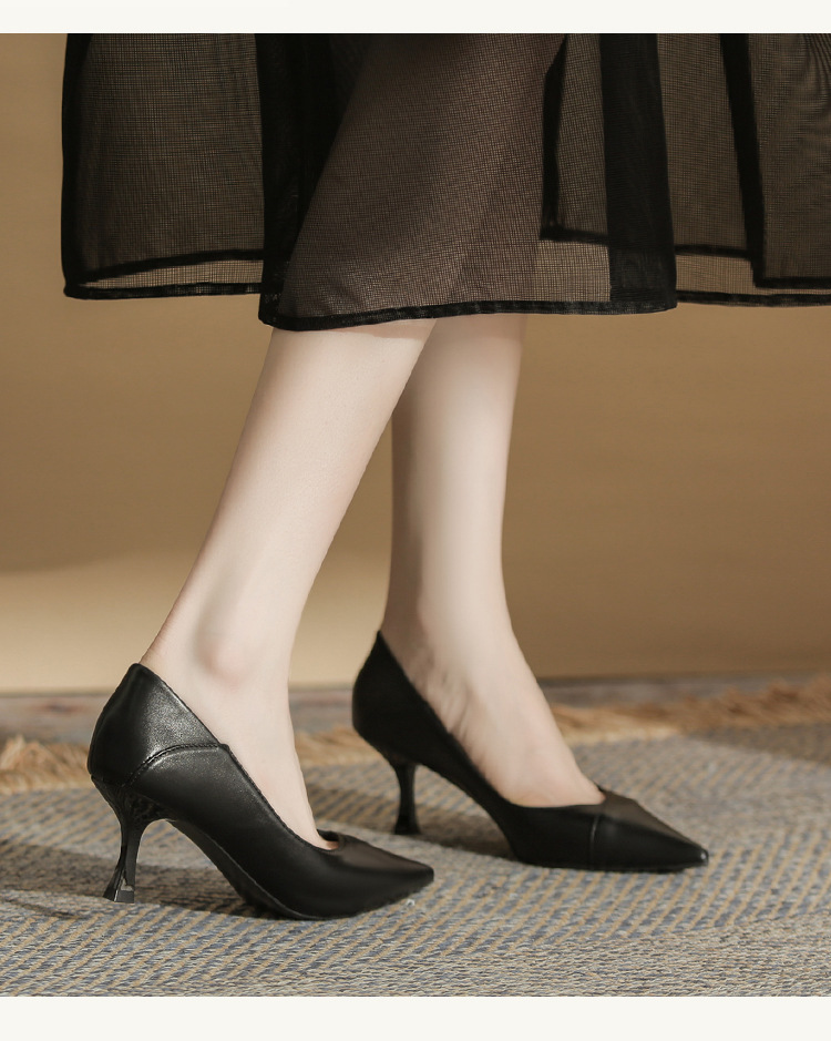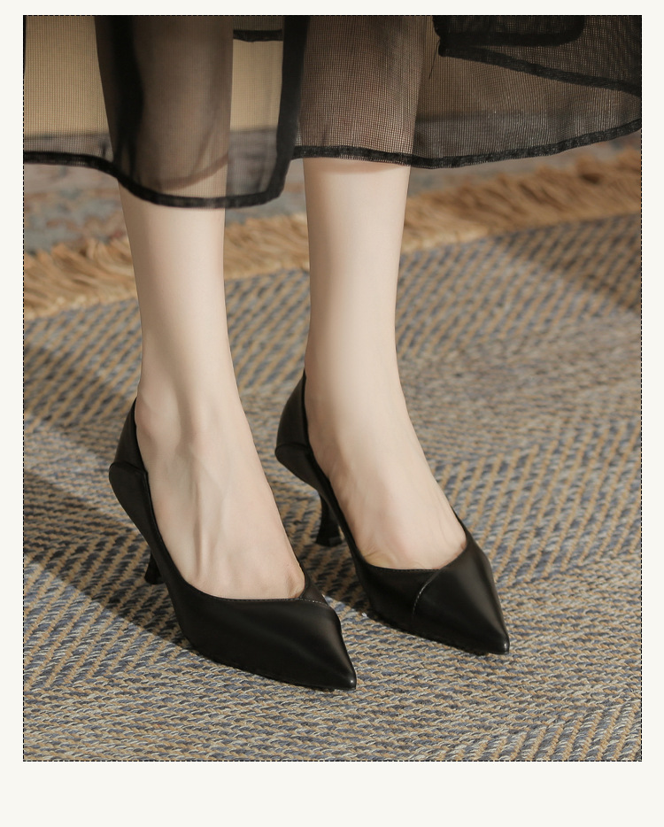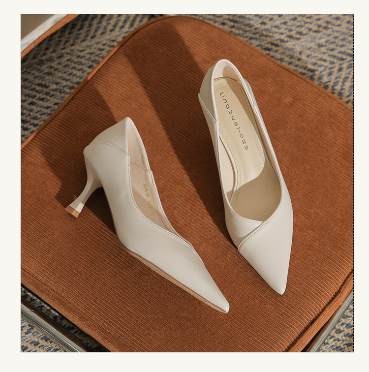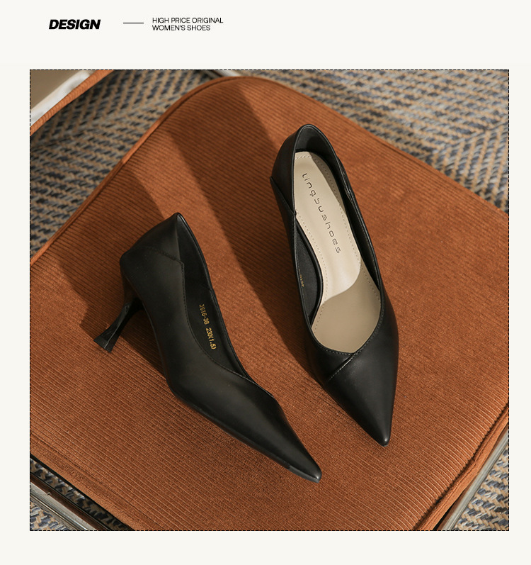4,616-38 여성 전문 얇은 굽 뾰족한 발가락 직업 면접 편안한 단색 하이힐