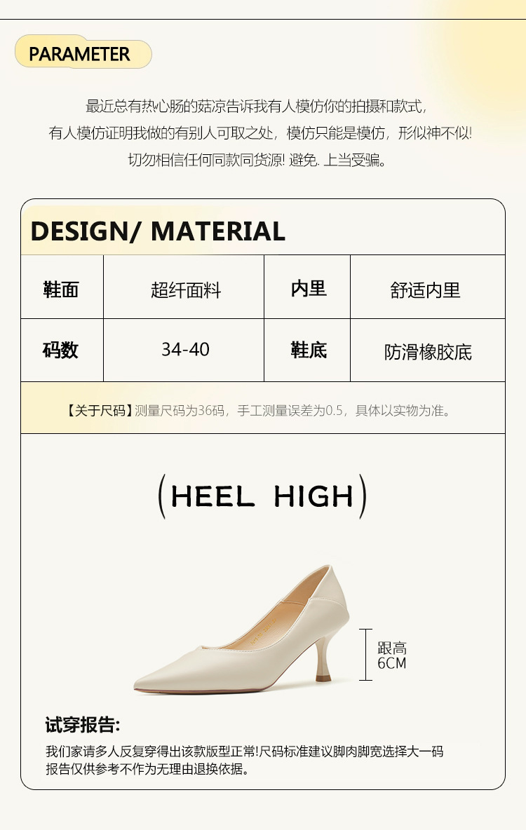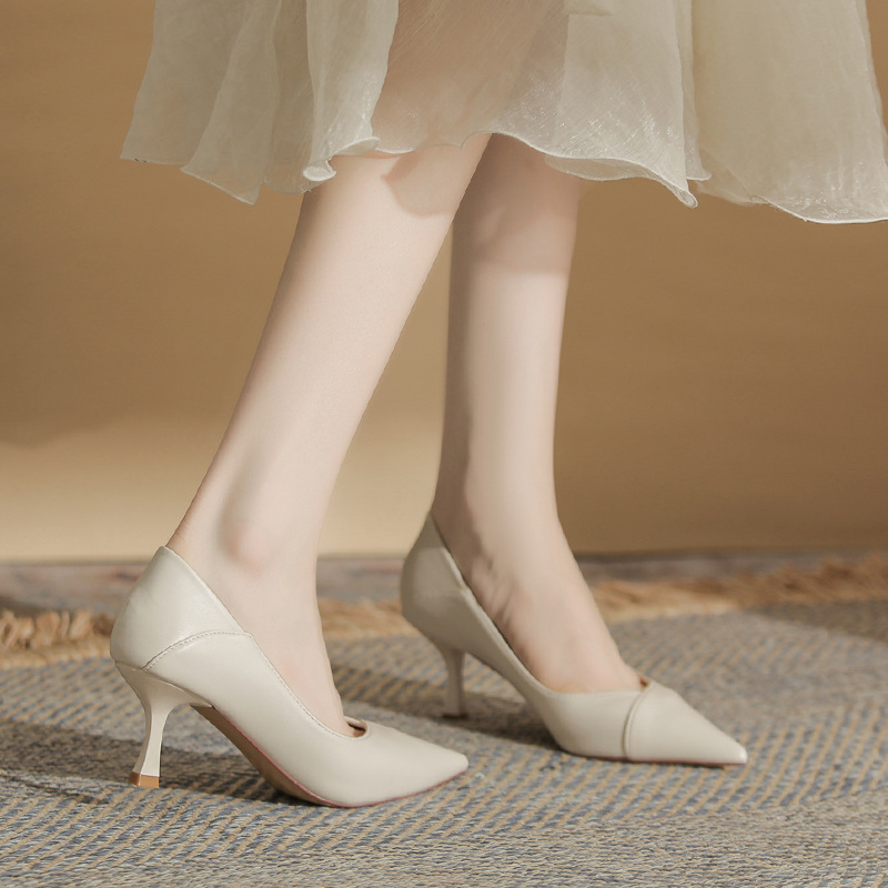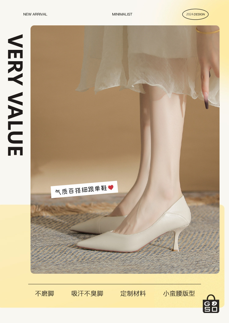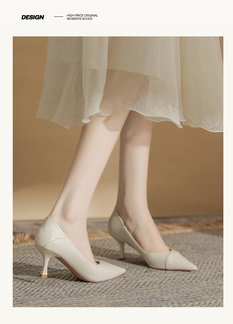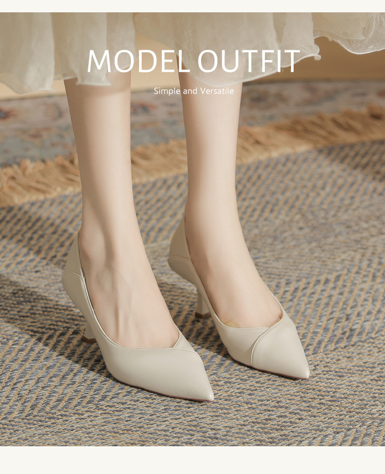 4,616-38 여성 전문 얇은 굽 뾰족한 발가락 직업 면접 편안한 단색 하이힐