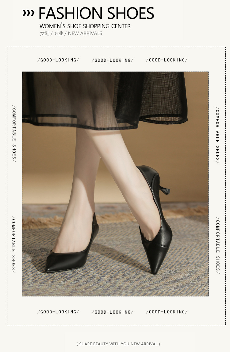4,616-38 여성 전문 얇은 굽 뾰족한 발가락 직업 면접 편안한 단색 하이힐스토어 가기