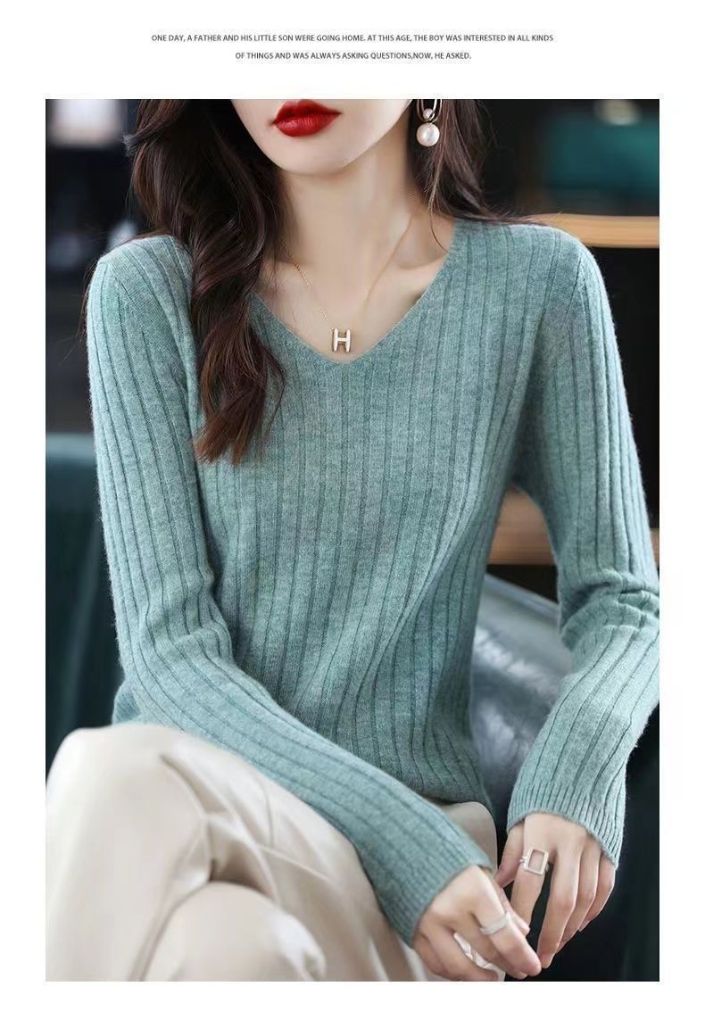 부드러운 찹쌀 고급 V 넥 하단식 셔츠 최고 가을과 겨울 여성을위한 새로운 한국 스타일의 느슨한 슬리밍 스웨터 스웨터스토어 가기