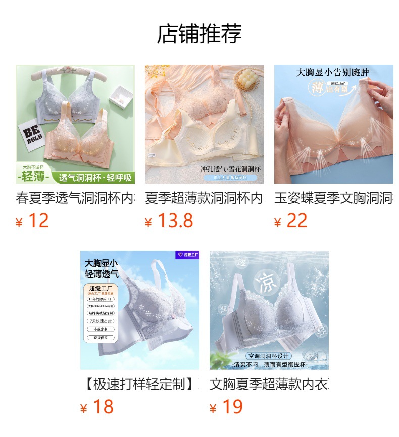 큰 가슴을 가진 여성을 위한 무봉제 속옷 여름 얇은 스타일 처짐 방지 브라, 초박형 속옷, 푸쉬업 브라스토어 가기