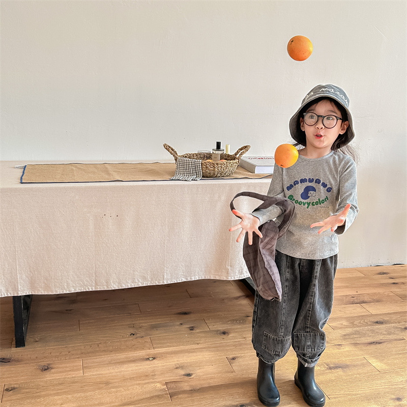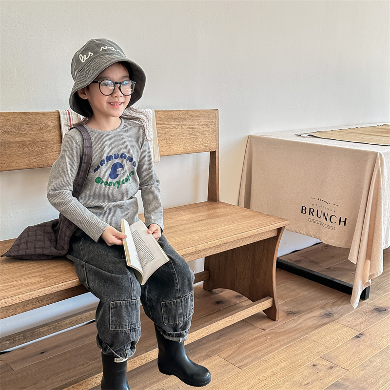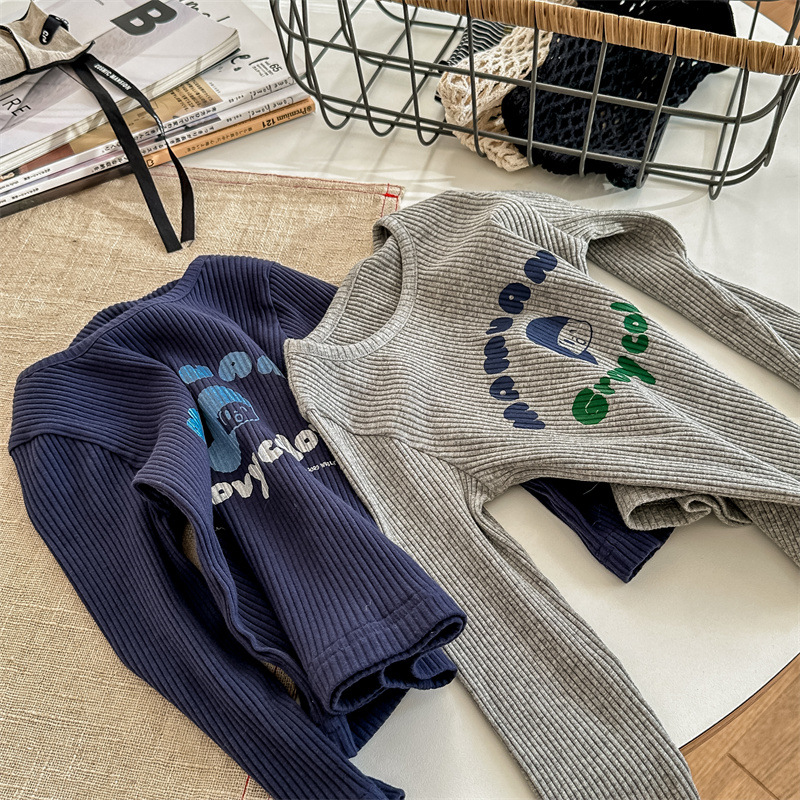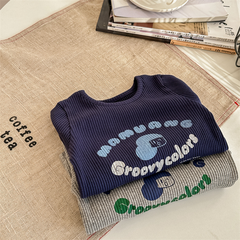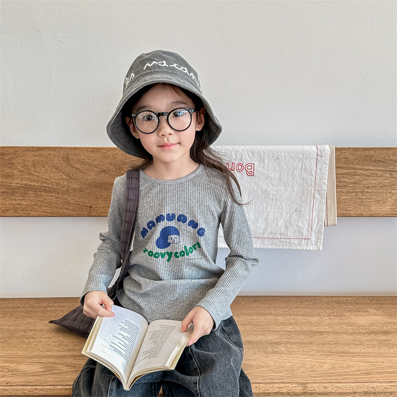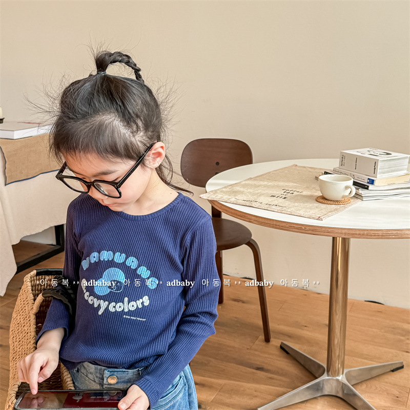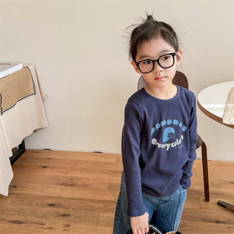 2025 가을 아동 의류 아동 한국 스타일 가을 긴팔 바닥 셔츠 소년 소녀 가을 티셔츠 5063스토어 가기