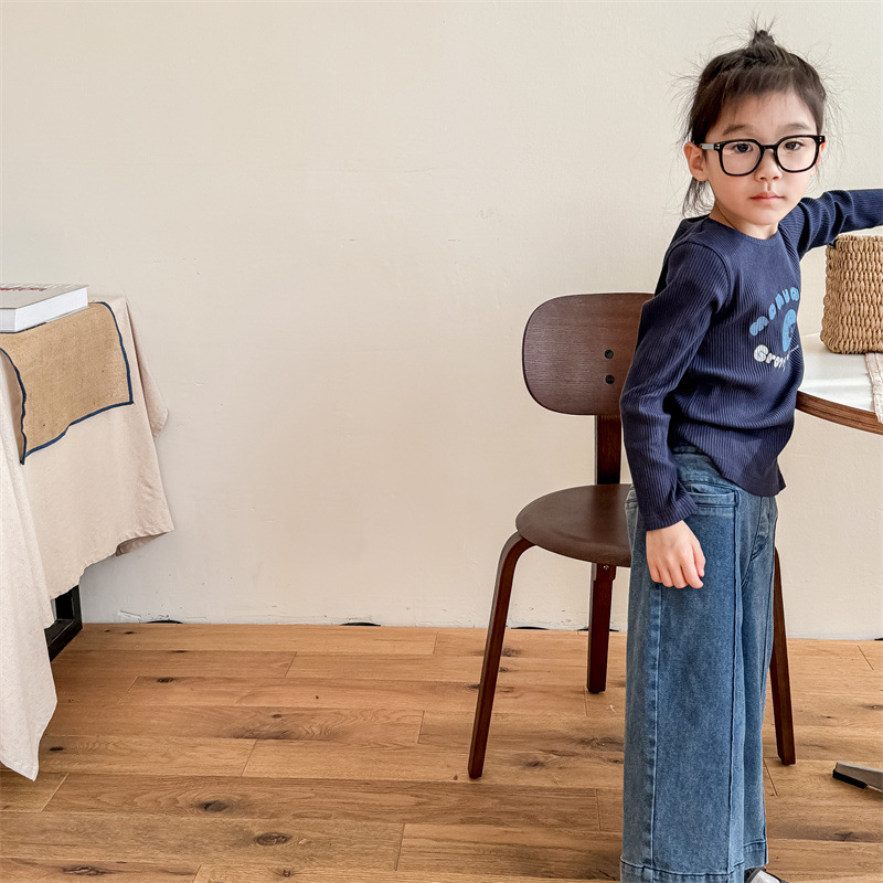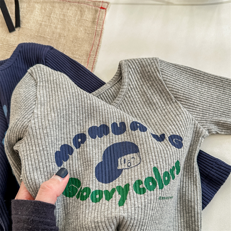 2025 가을 아동 의류 아동 한국 스타일 가을 긴팔 바닥 셔츠 소년 소녀 가을 티셔츠 5063