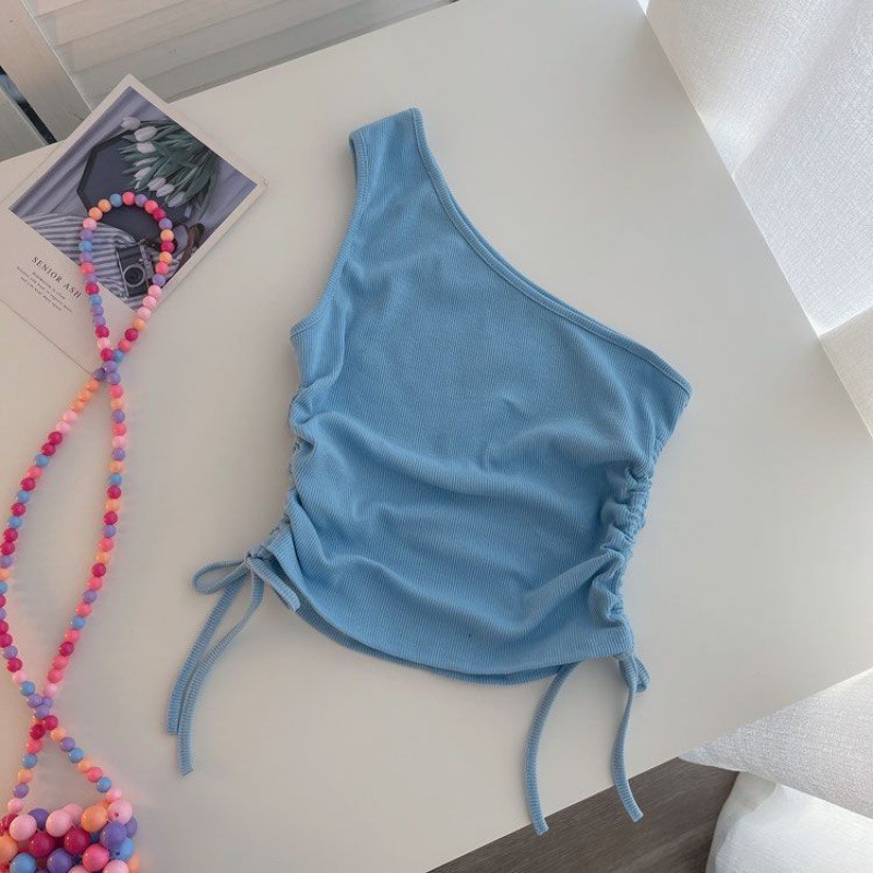 여자 여름 조끼 슬링 아기 서양식 어린이 성격 유행 한국 스타일 유행 인터넷 축하 무승부 불규칙한 어깨스토어 가기