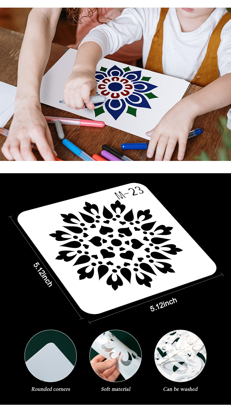 아마존 핫 세일 만다라 템플릿 플라스틱 빈 드로잉 템플릿 DIY 아트 액세서리 드로잉 통치자 공장 직접 판매