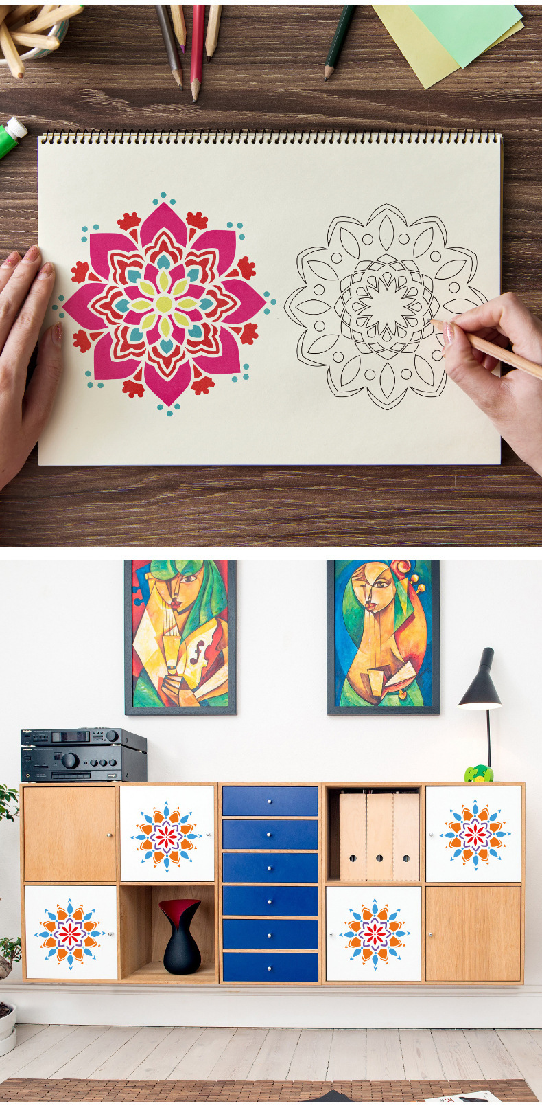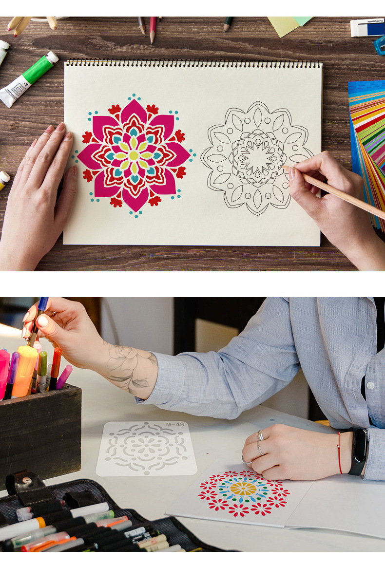 아마존 핫 세일 만다라 템플릿 플라스틱 빈 드로잉 템플릿 DIY 아트 액세서리 드로잉 통치자 공장 직접 판매스토어 가기
