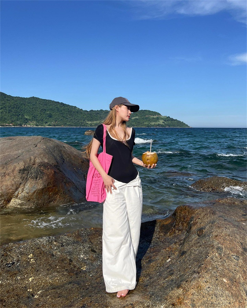 국경 간 한국 복고풍 간단한 단색 짧은 소매 소녀 작은 가슴 섹시한 백리스 원피스 수영복 여성 수영복 도매스토어 가기