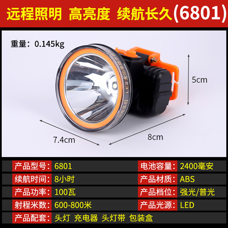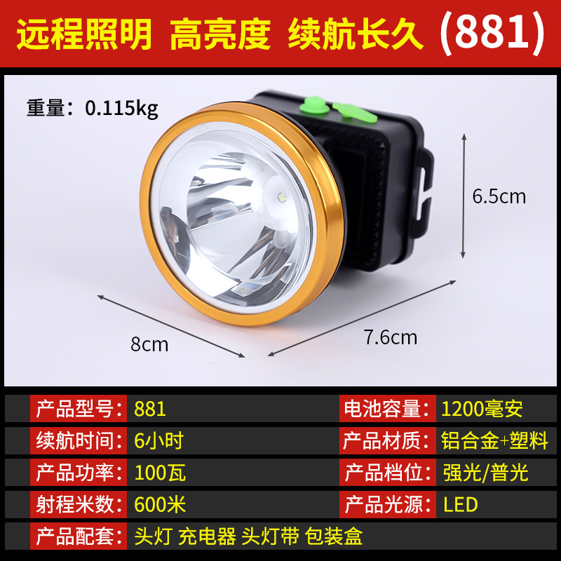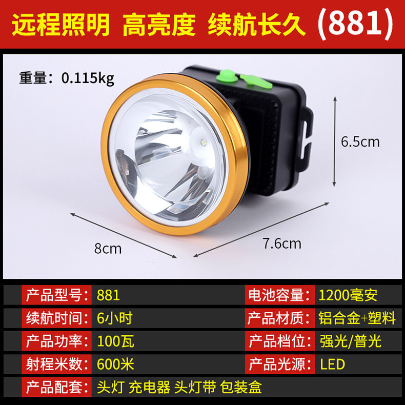 맞춤형 LED 리튬 배터리 헤드라이트 고출력 강한 빛 충전식 서치라이트 야외 캠핑 등산 조명 광부의 램프스토어 가기